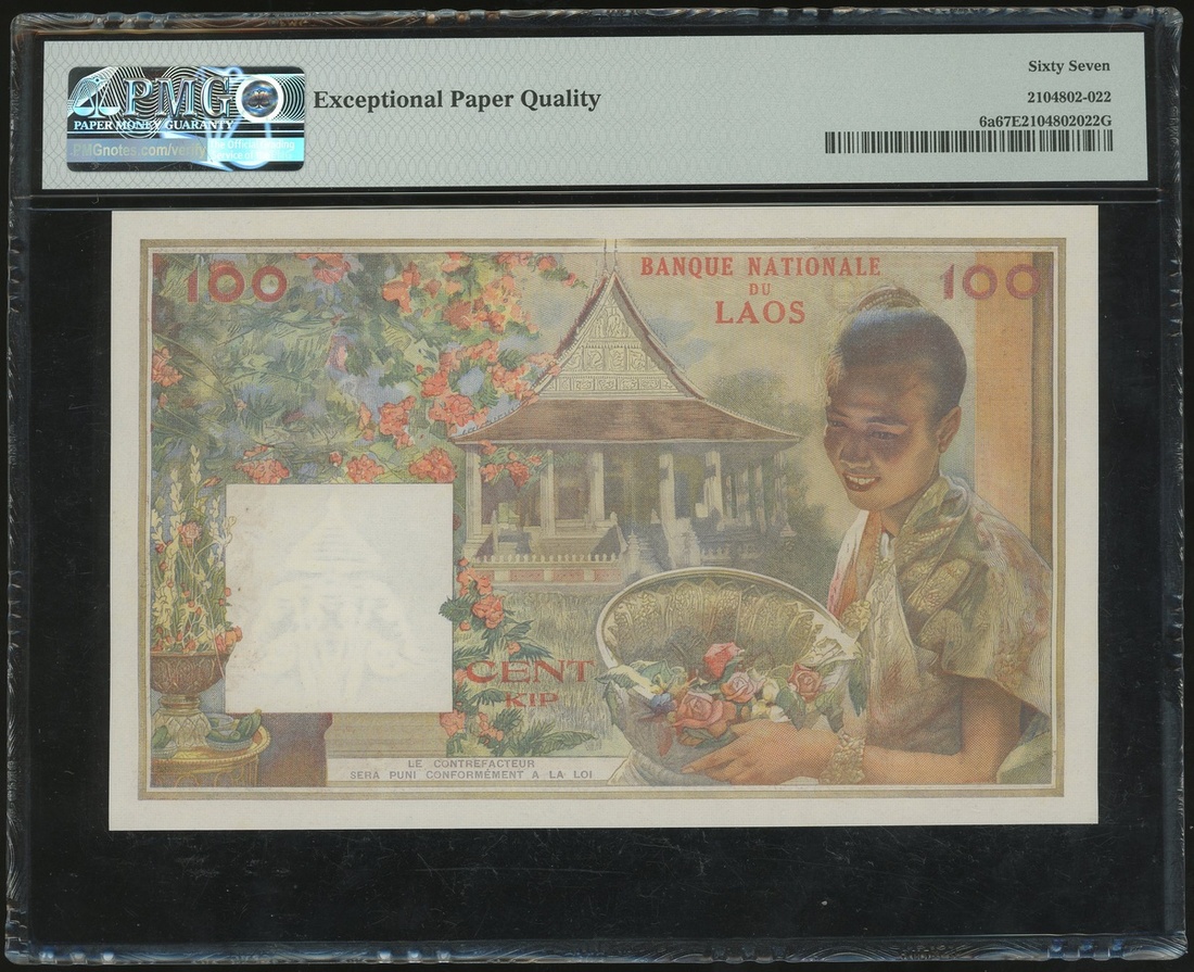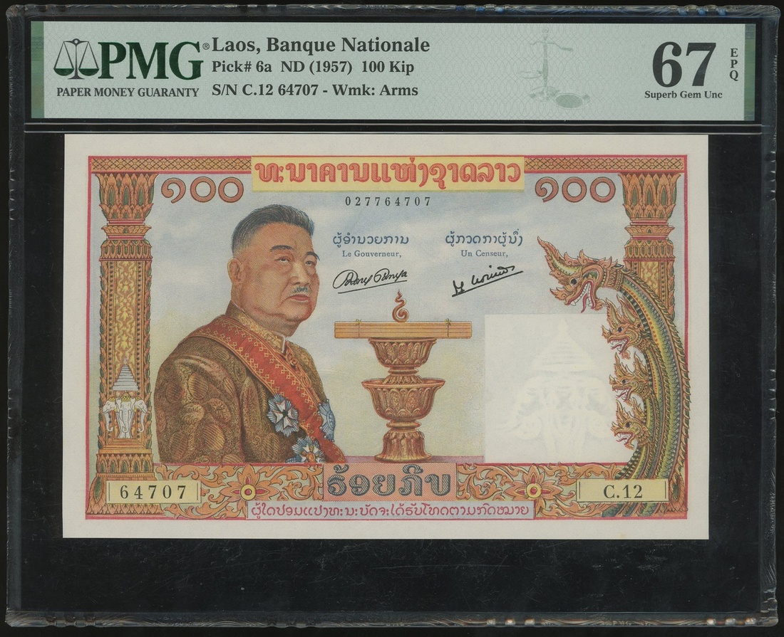 無日期(1957)寮國100基普,編號C.12 64799,PMG 67EPQ