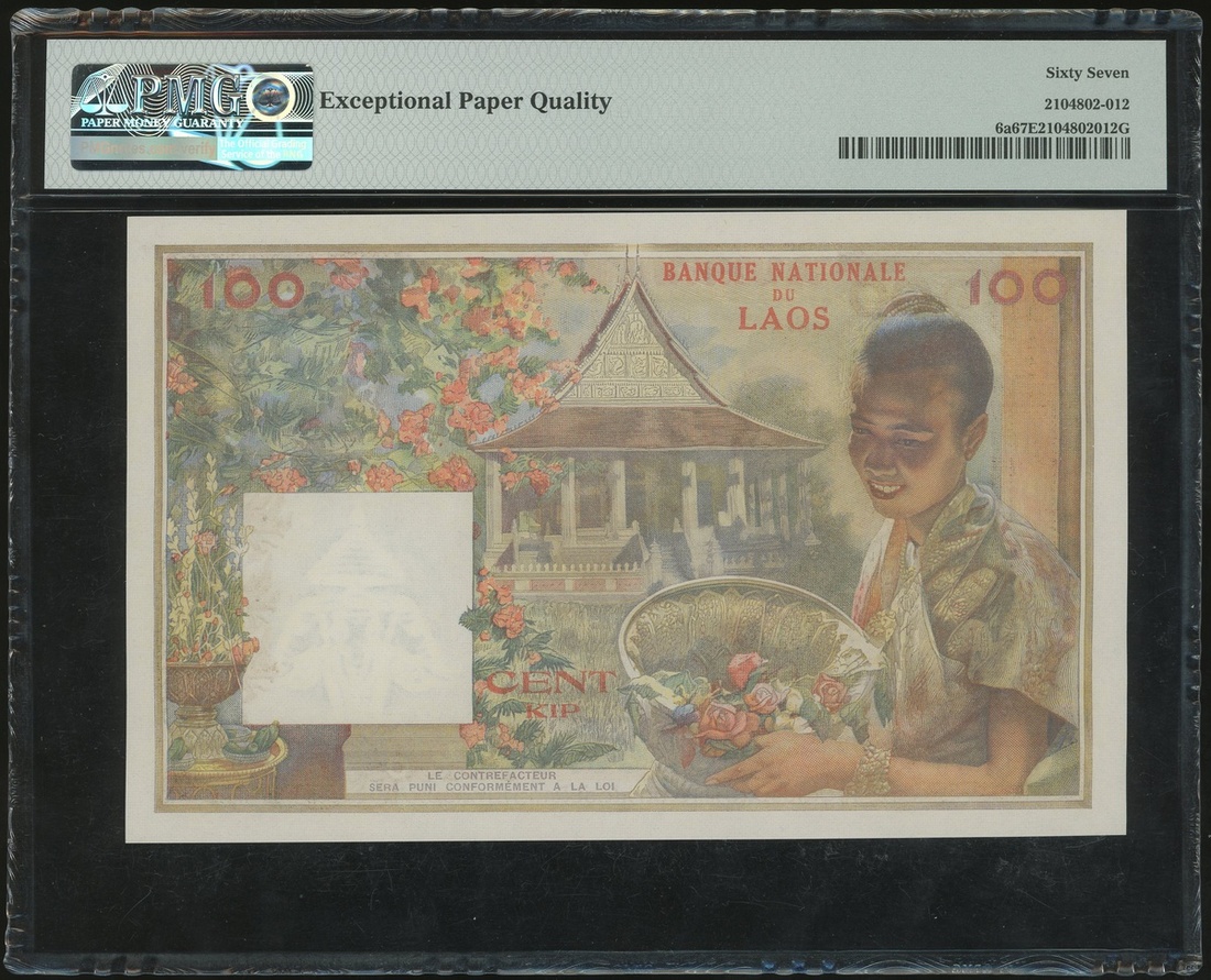 無日期(1957)寮國100基普,編號C.12 64707,PMG 67EPQ
