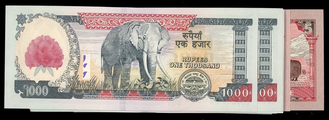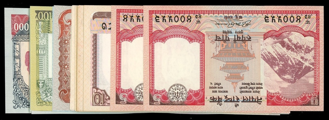 2007-2010年尼泊爾一組25枚,包括5盧比2枚,10盧比12枚,20盧比2枚,50盧比2枚,100盧比2枚及1000盧比5枚,均無日期,Manandhar署名,5,20,50及100盧比都是連號一對,10盧比包括了140087-90及361418-19共2組連號,1000盧比也是有2組連號,大多UNC品相,若干10元紙邊有微黃