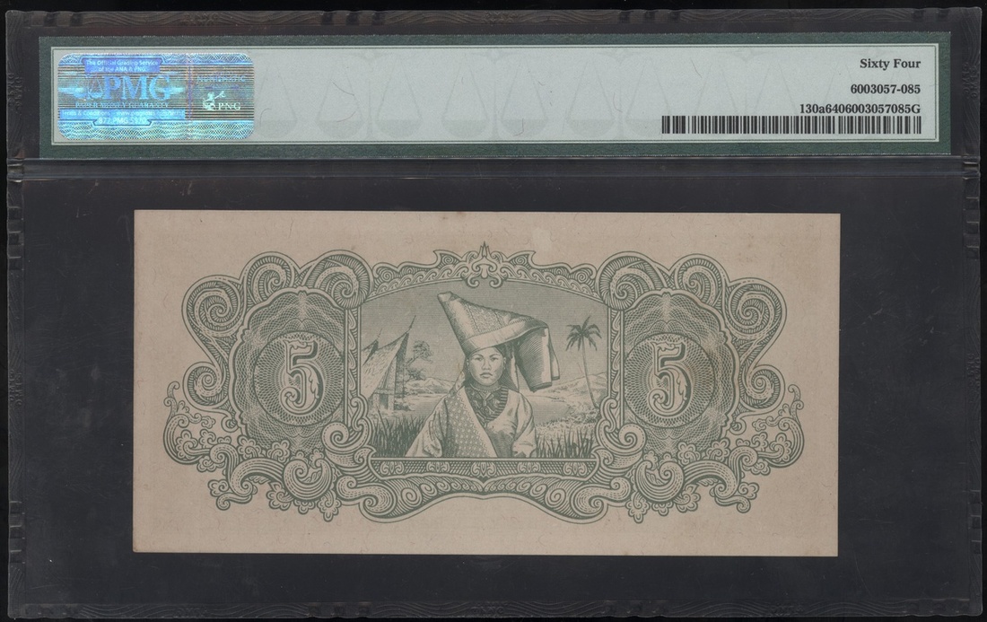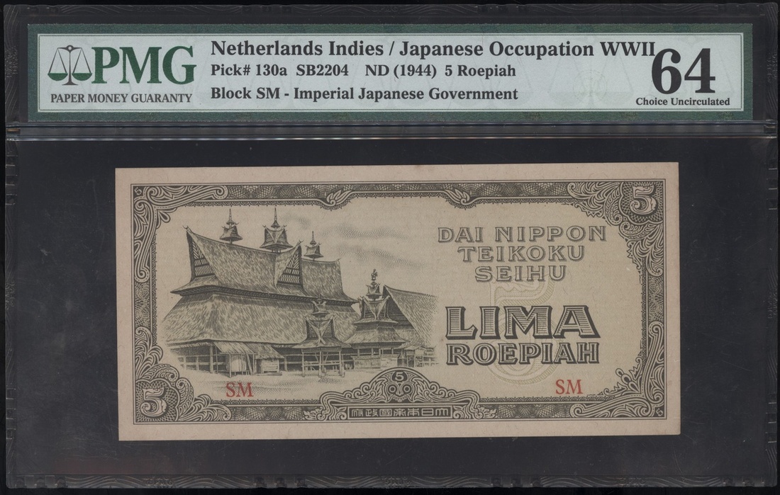 無日期(1944)日侵荷屬印尼5盾,組號SM,PMG 64
