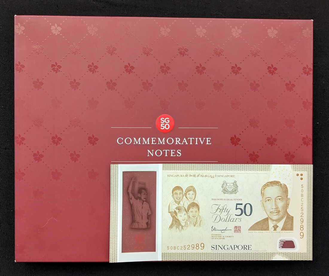 新加坡50元紀念鈔,編號50BC252989,UNC,連原裝套