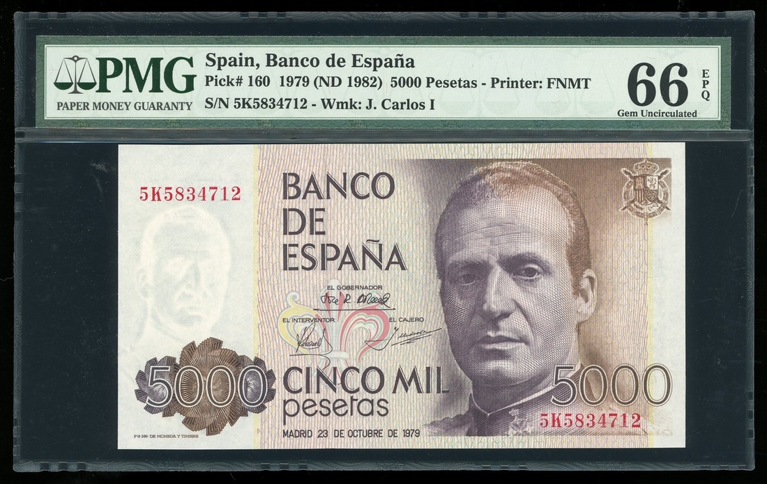 Spain, 5000 pesetas,1979, serial number 5K5834712 (Pick 160), PMG 66EPQ Gem Uncirculated