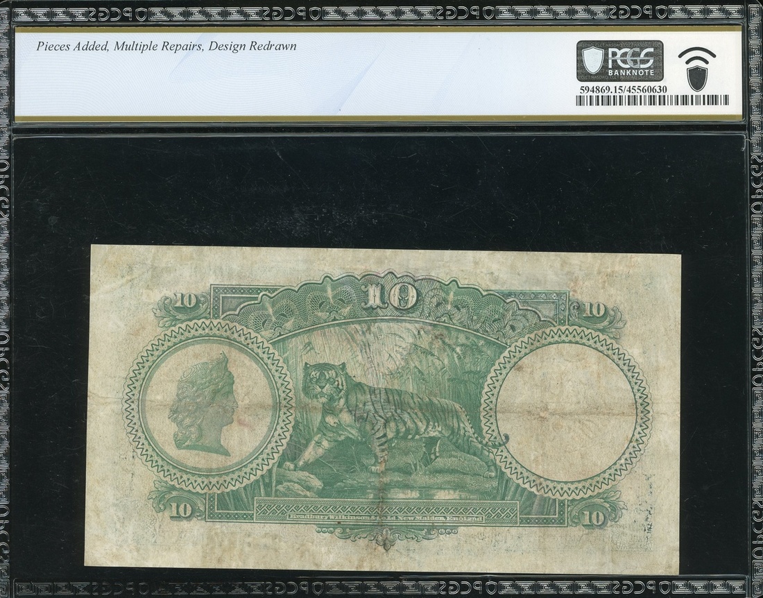 1935年海峽殖民地10元,編號B/55 82584,PCGS Banknote 15 ,有增補,多處修補及重畫