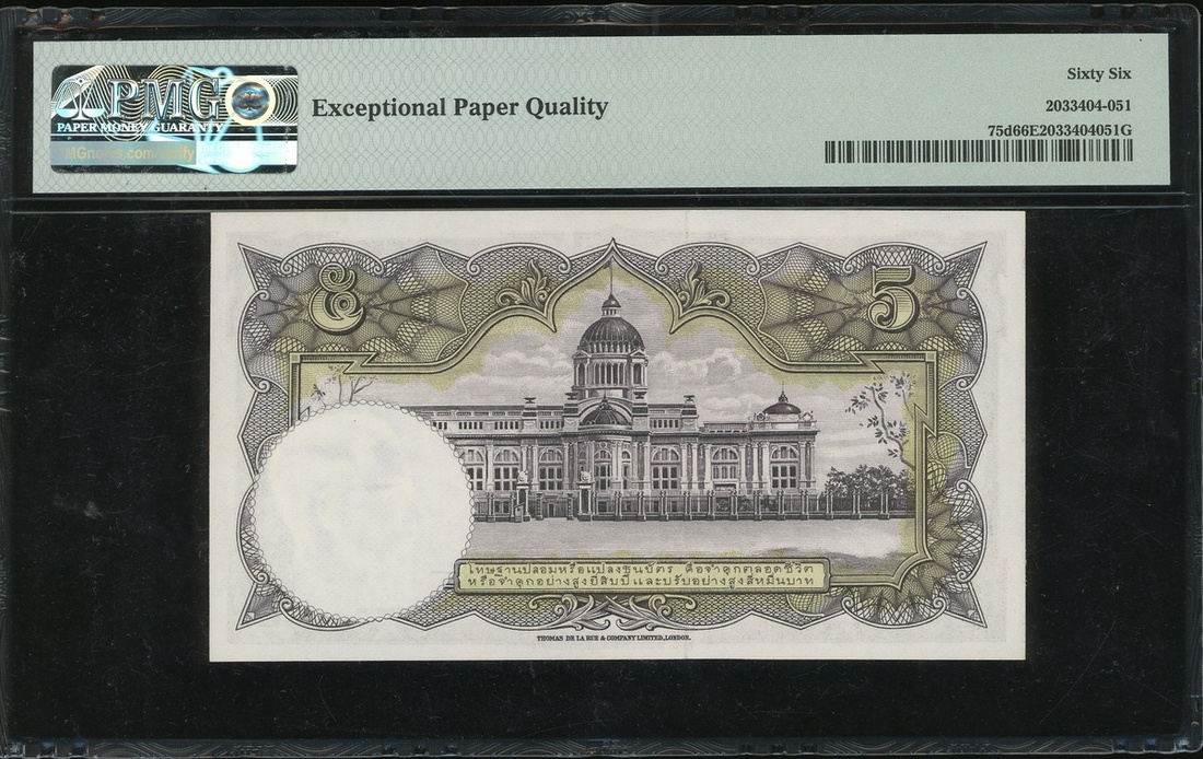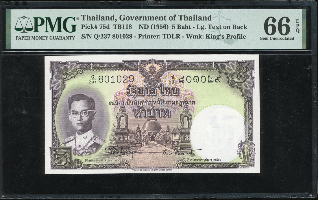 無日期(1956)泰國5銖,編號Q/237 801029,PMG 66EPQ