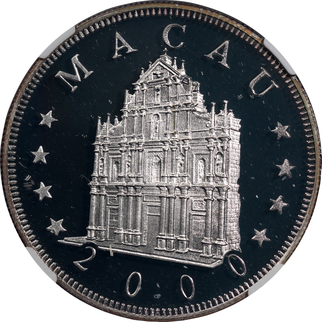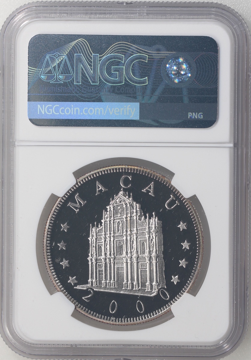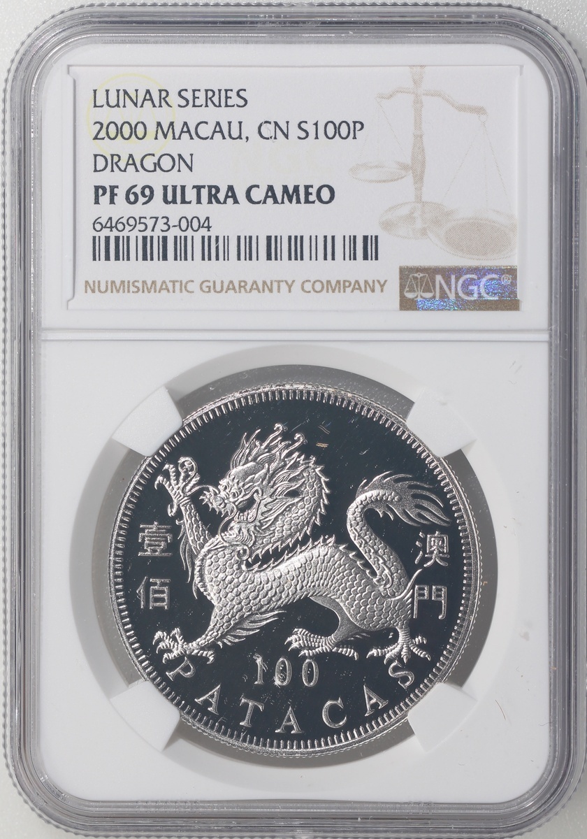 2000年澳門龍年生肖精鑄銀幣100元,總含銀量0.84安士,附證書及原盒,NGC PF 69 Ultra Cameo,#6469573-004