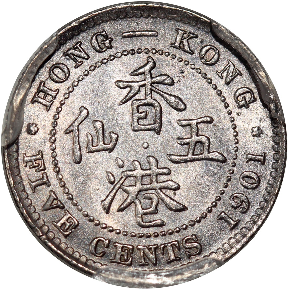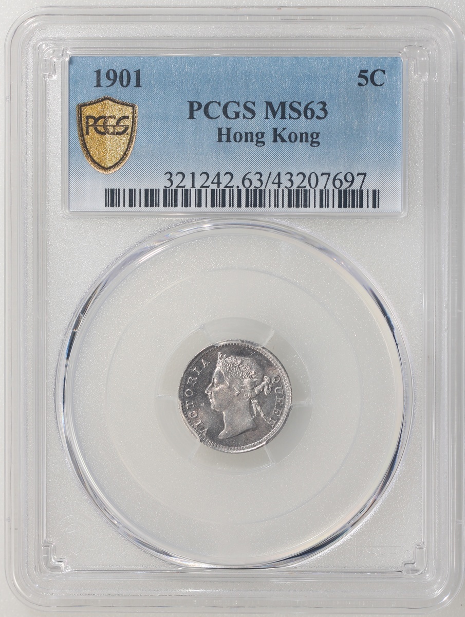 Hong Kong, silver 5 cents, 1901, PCGS MS63, #43207697.