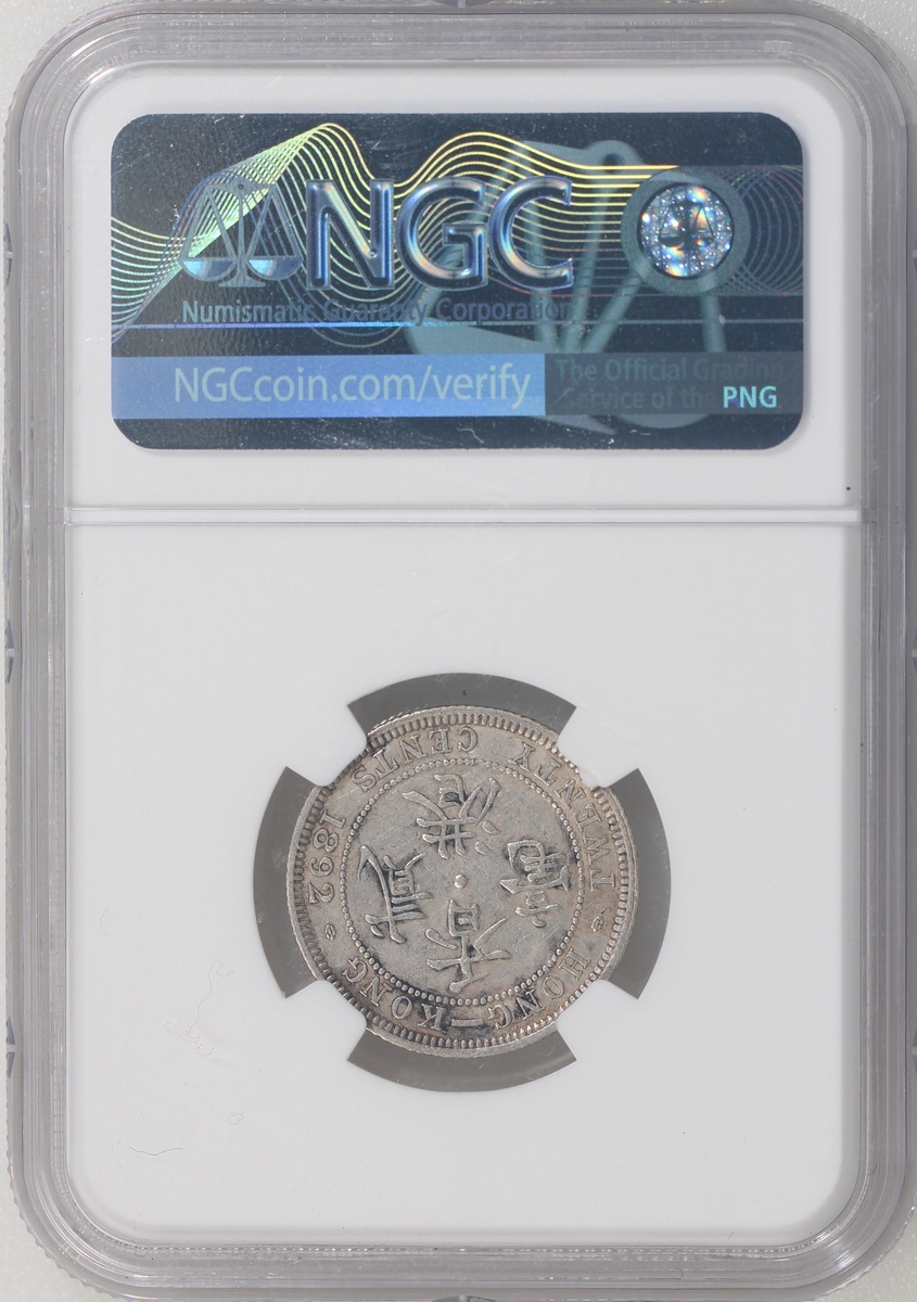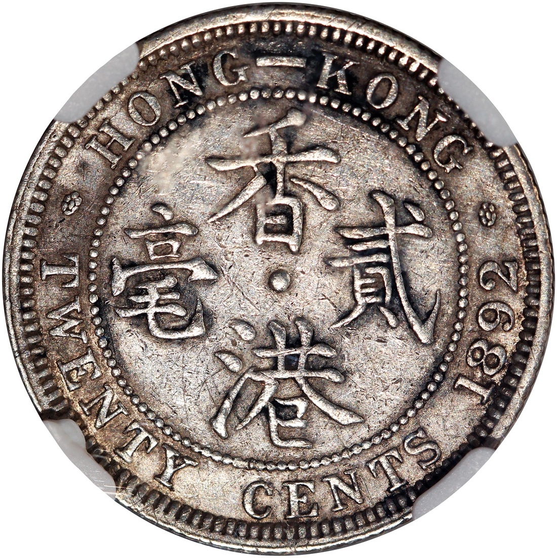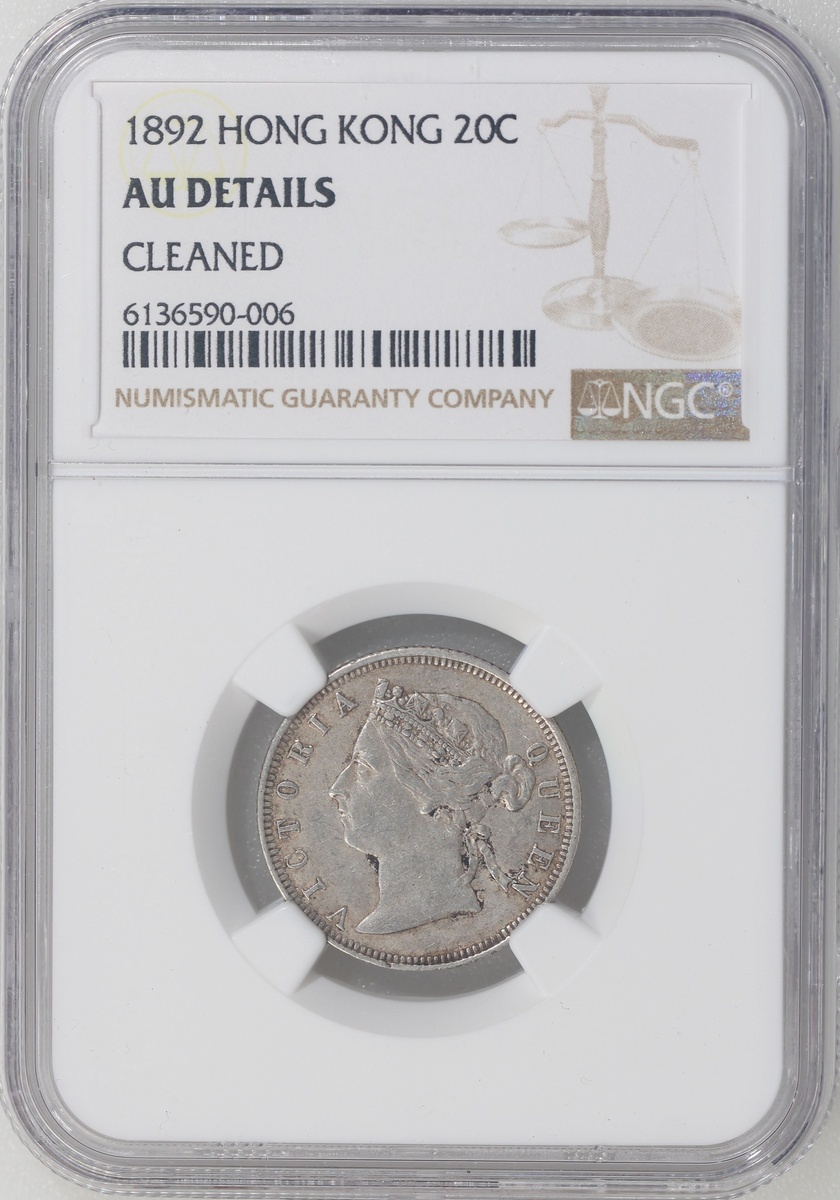 Hong Kong, silver 20 cents, 1892, NGC AU Details, cleaned. Cert.#6136590-006