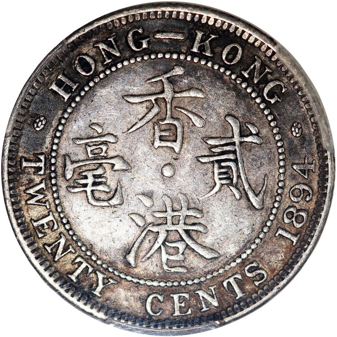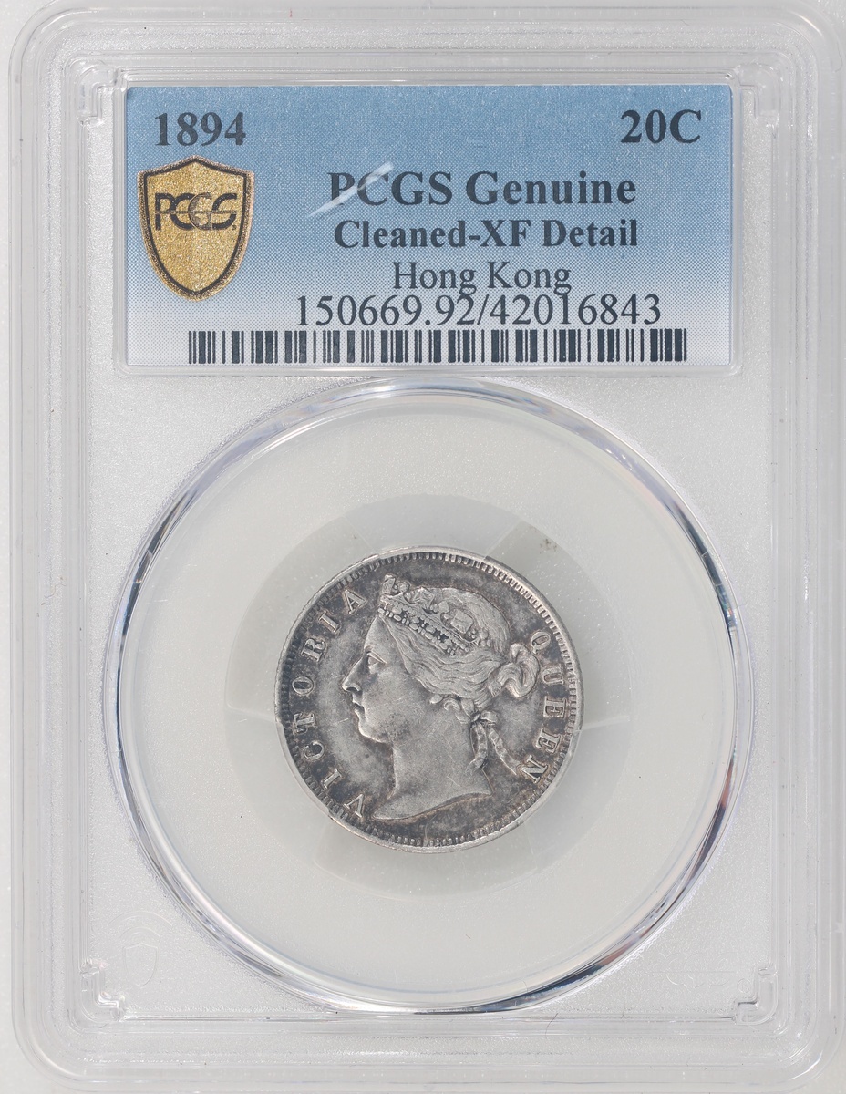 Hong Kong, silver 20 cents, 1894, PCGS XF Detail, cleaned. Cert.#42016843
