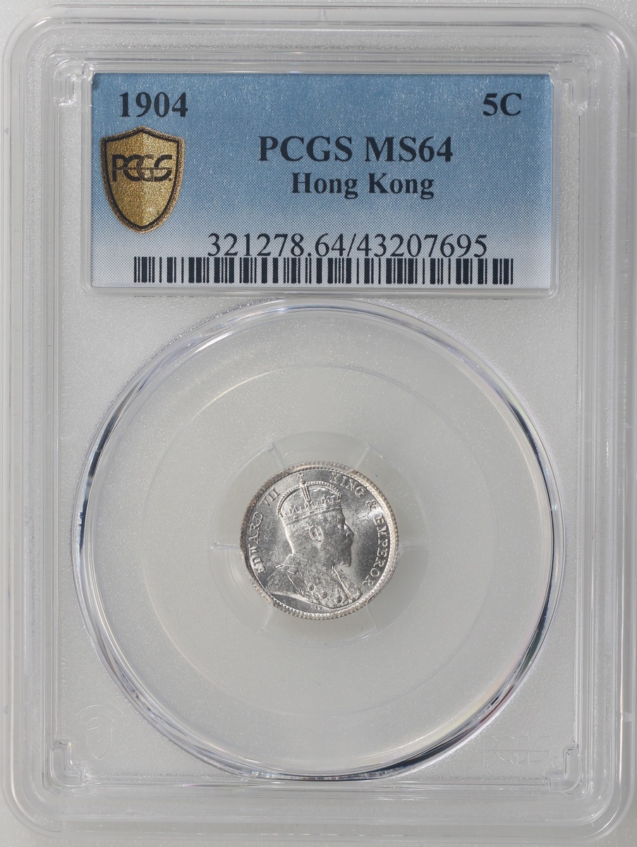 Hong Kong, silver 5 cents, 1904, PCGS MS64, #43207695.