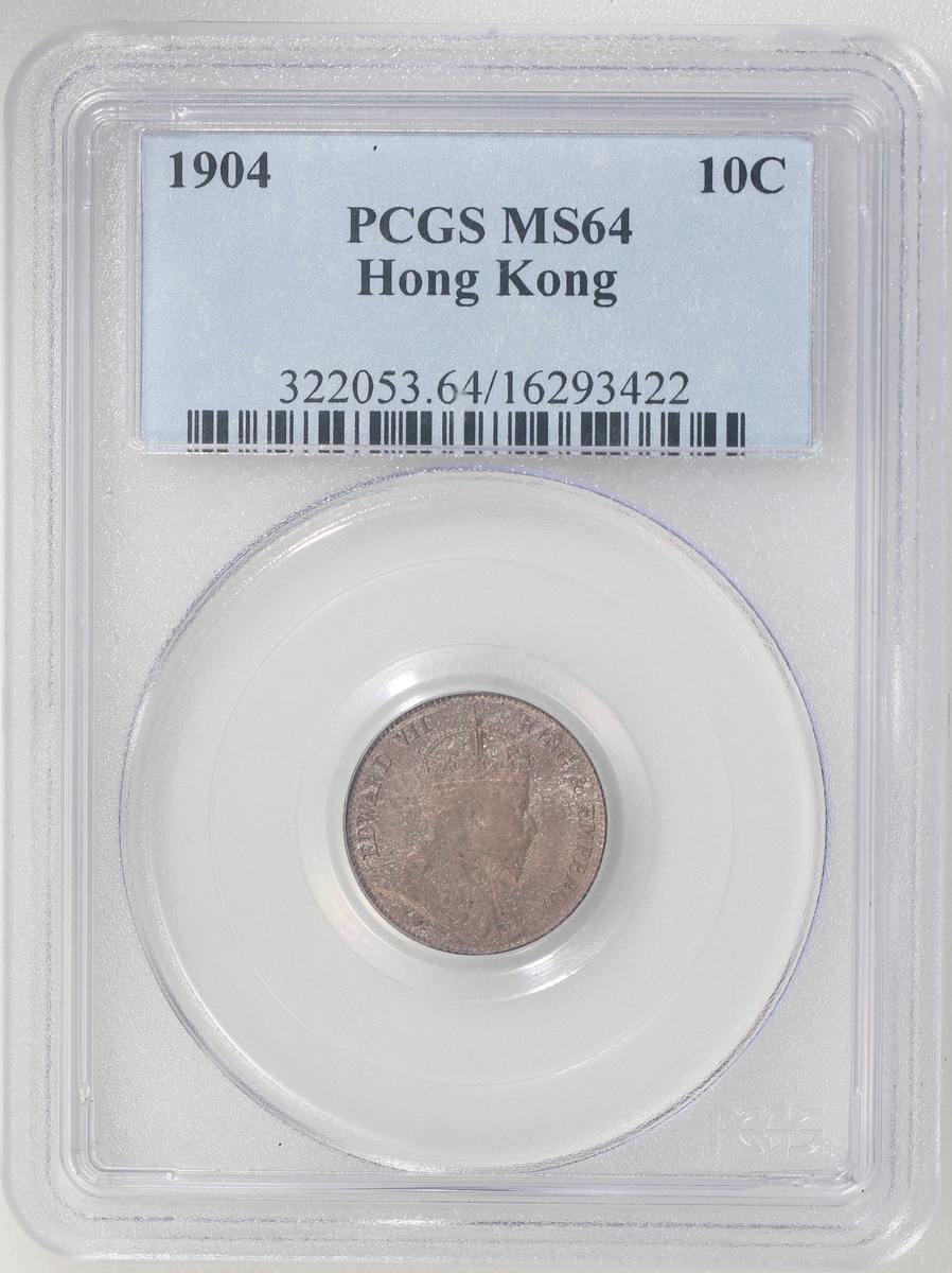 Hong Kong, silver 10 cents, 1904, Edward VII on obverse, evenly toned, PCGS MS64. Cert.# 16293422