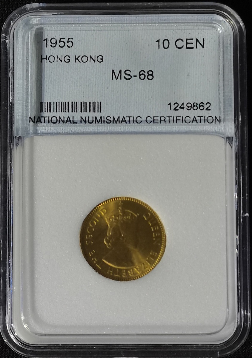 1955年香港1毫,NNC MS68,帶原光,#1249862