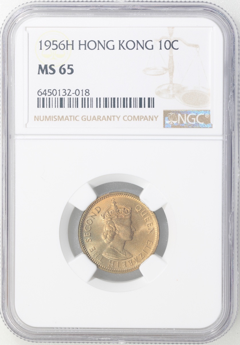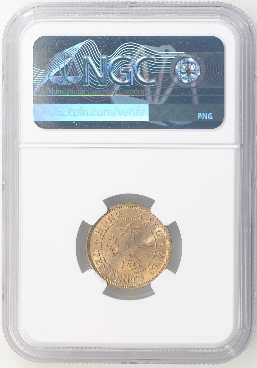 Hong Kong, nickel brass 10 cents, 1956-H, NGC MS65, Cert. #6450132-018