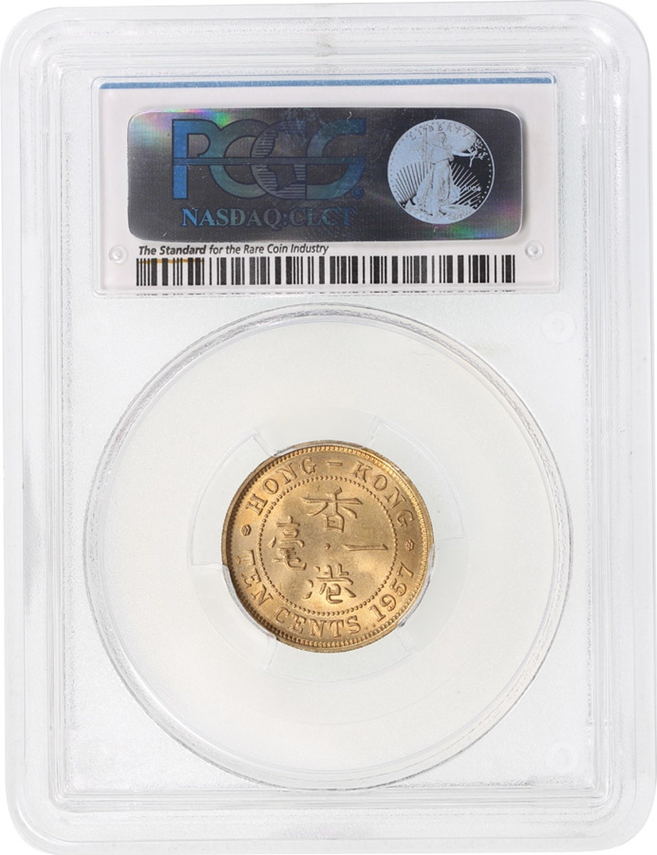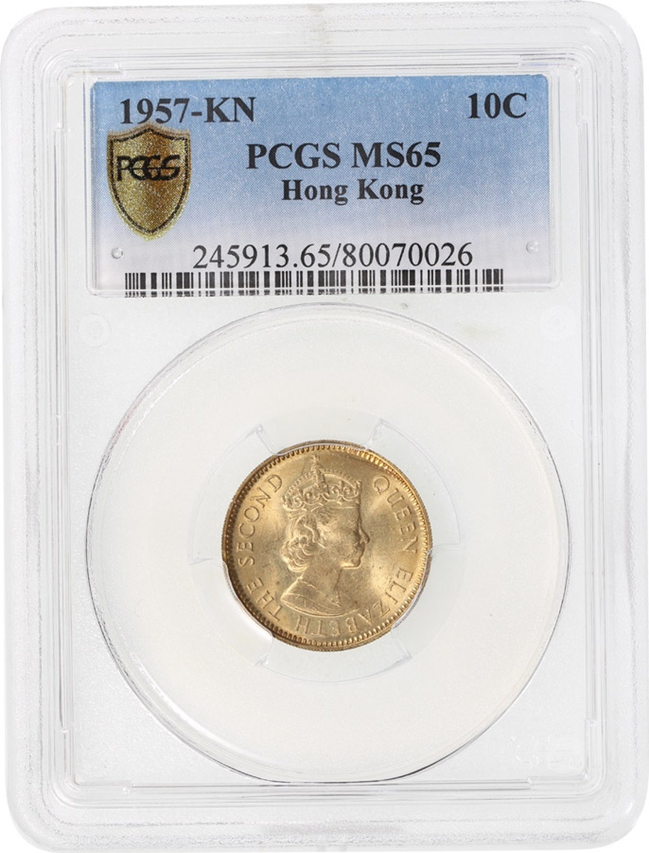 Hong Kong, a pair of nickel brass 10 cents, 1957-KN, both PCGS MS65.(2)