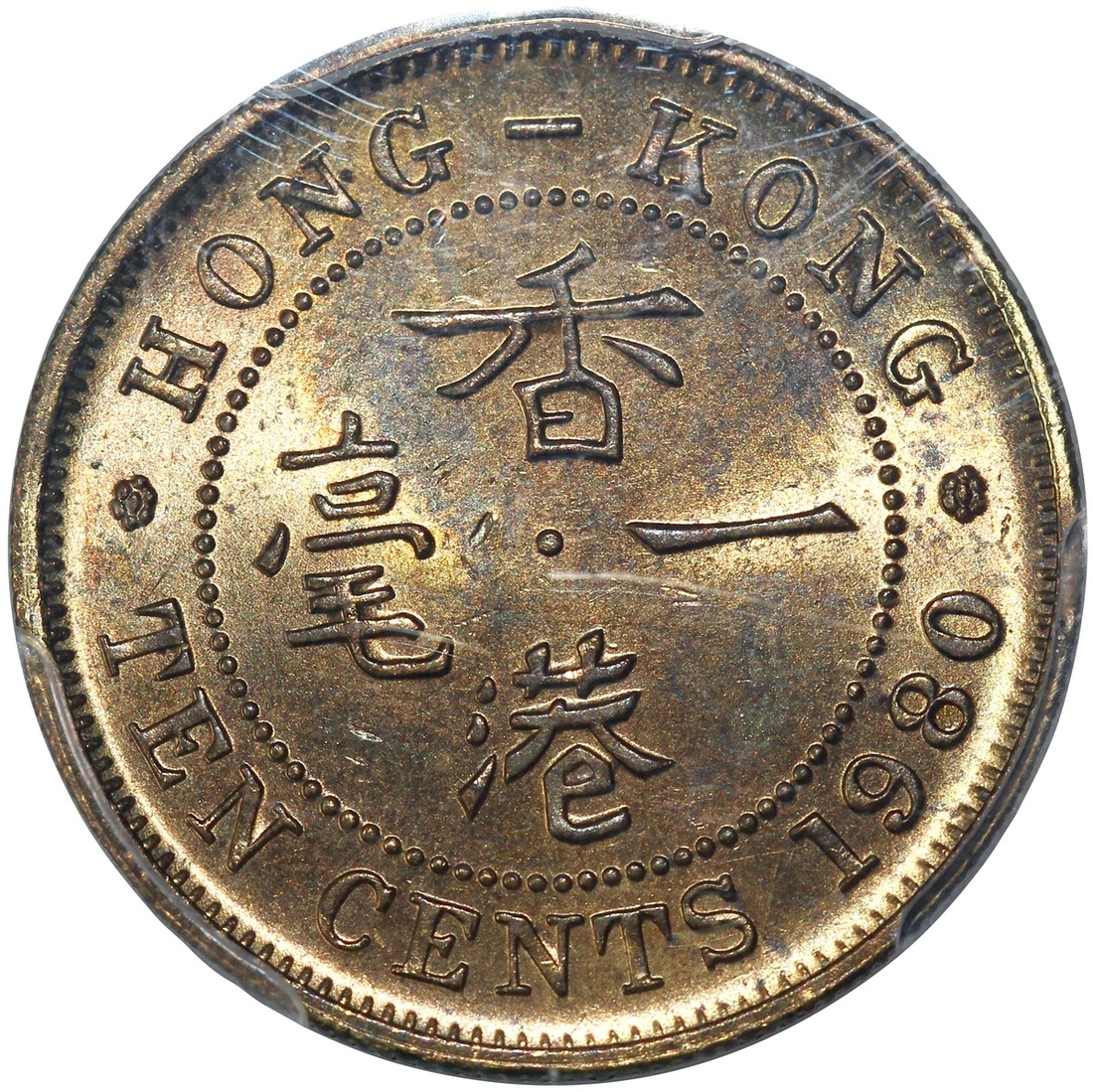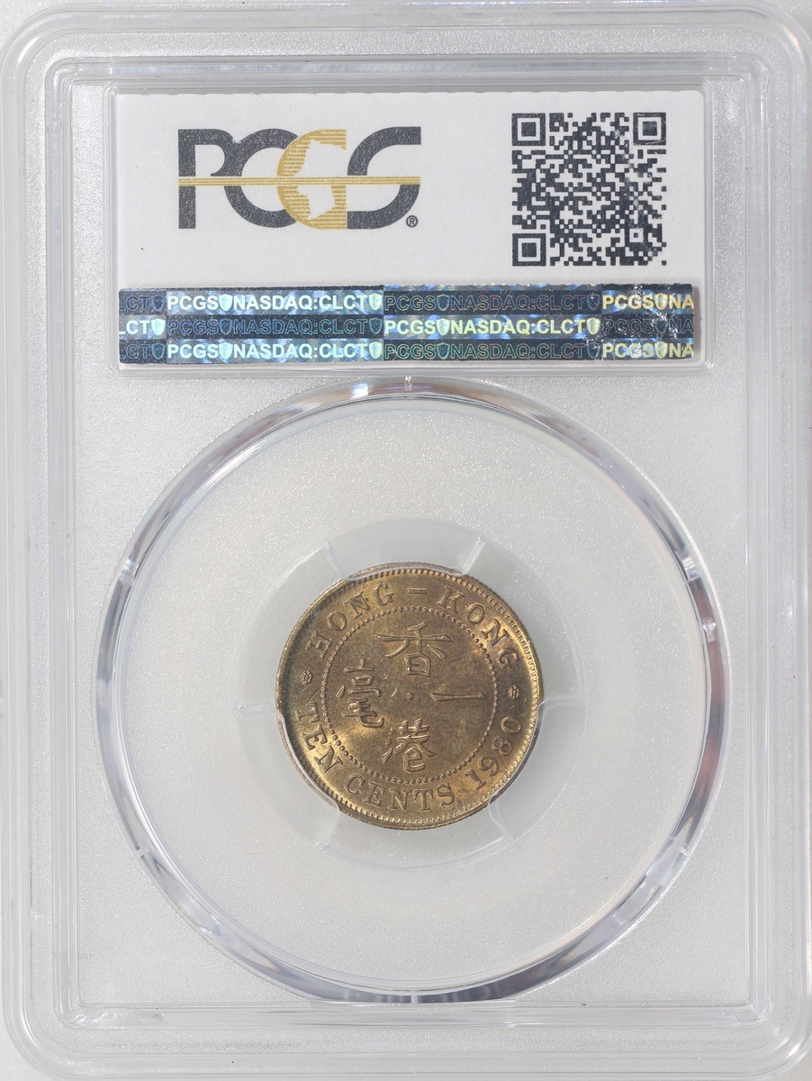 Hong Kong, brass 10 cents, 1980, PCGS MS64 #37646118