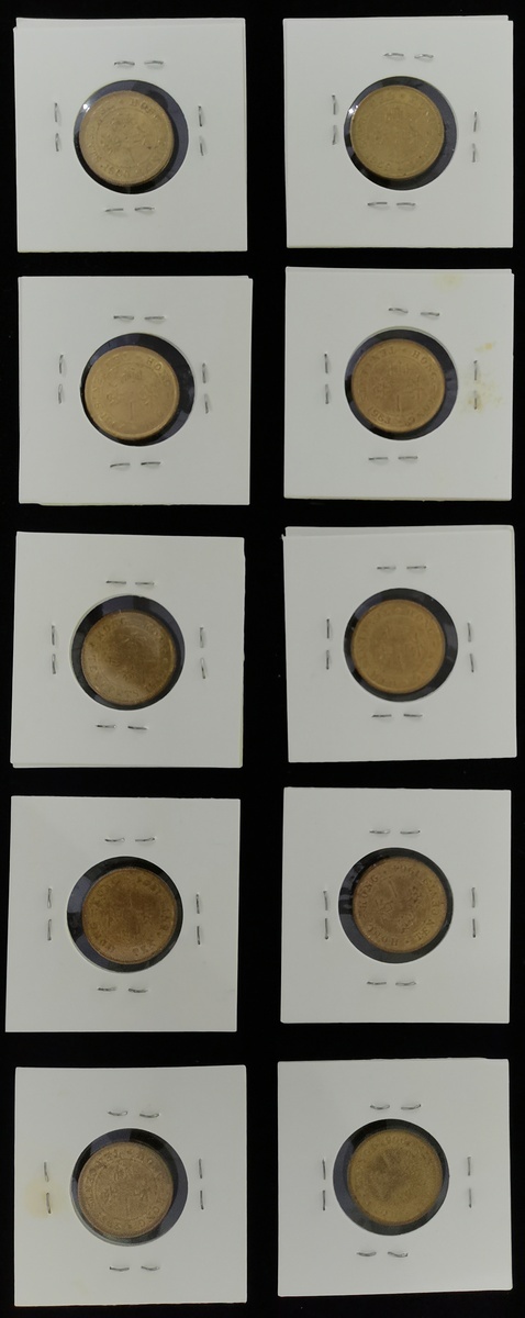 Hong Kong, a group of 20x 10 cents, consists of: 1958KN x3,