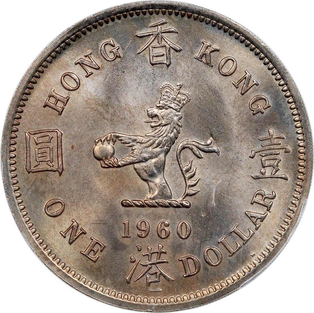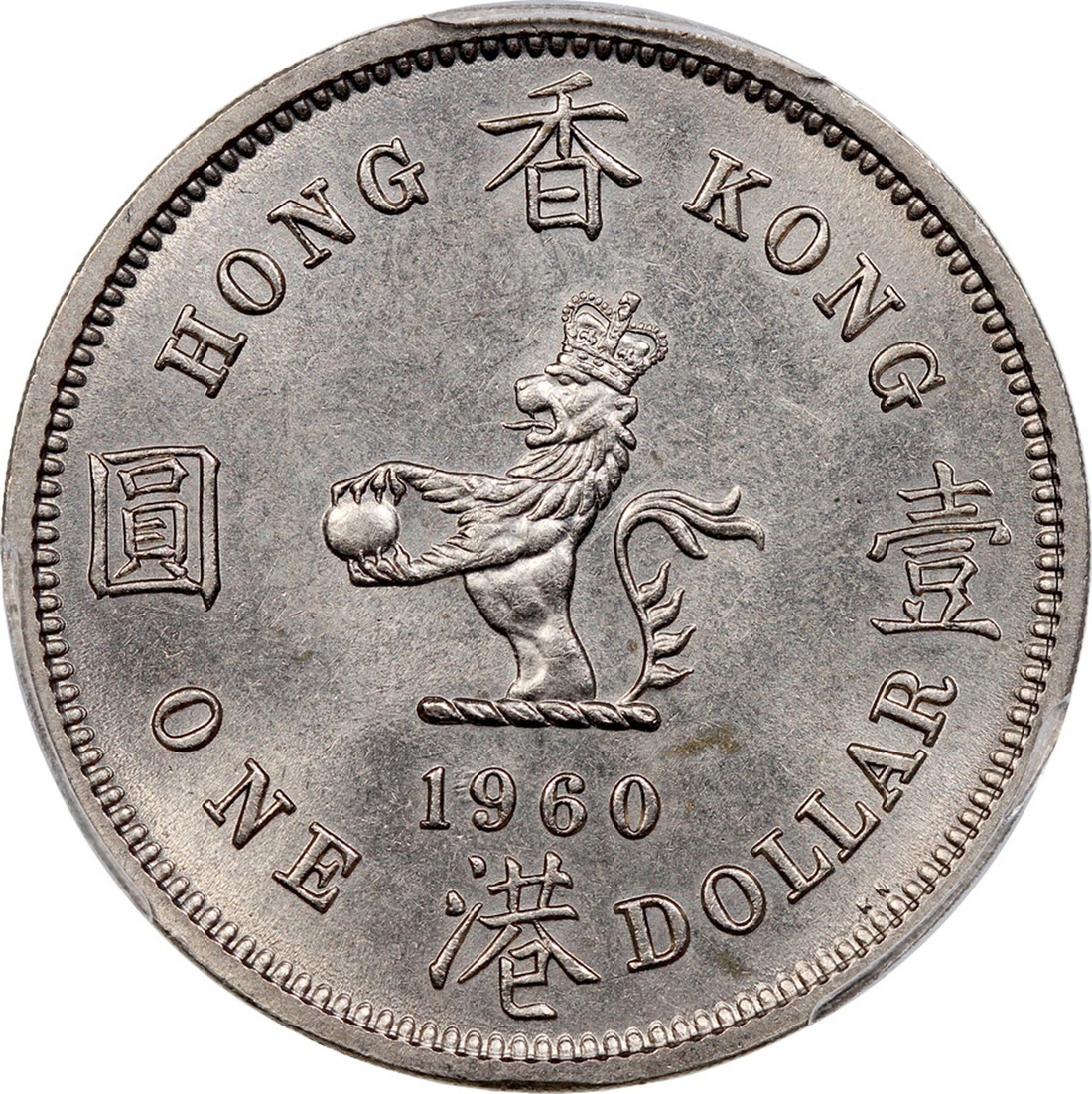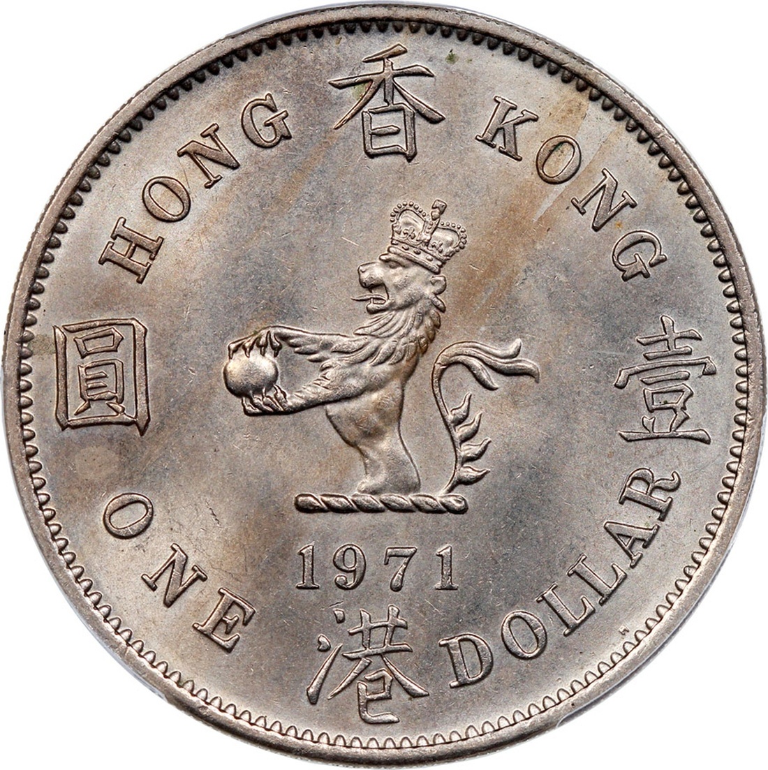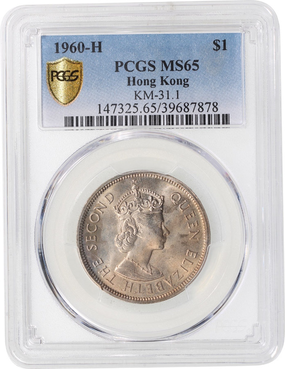 Hong Kong, a trio of copper nickel $1, 1960-KN and 1960-H, 1971-H, (KM-31.3), PCGS MS64, MS65, MS64.(3)