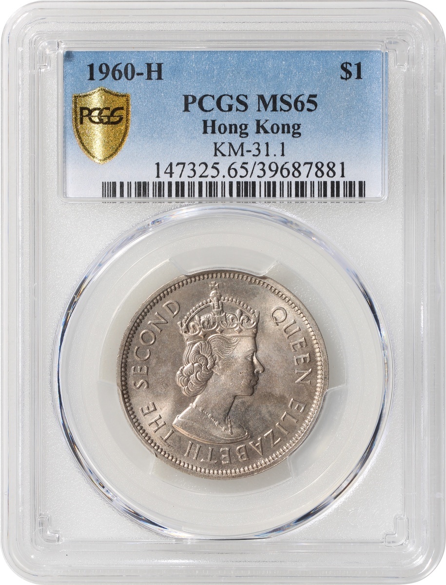 1960-H及1971-H香港1元一對,分別PCGS MS65及MS66,編號39687881及37573964