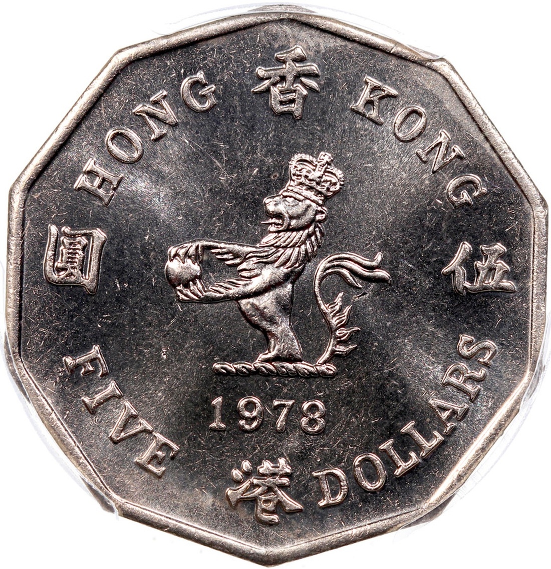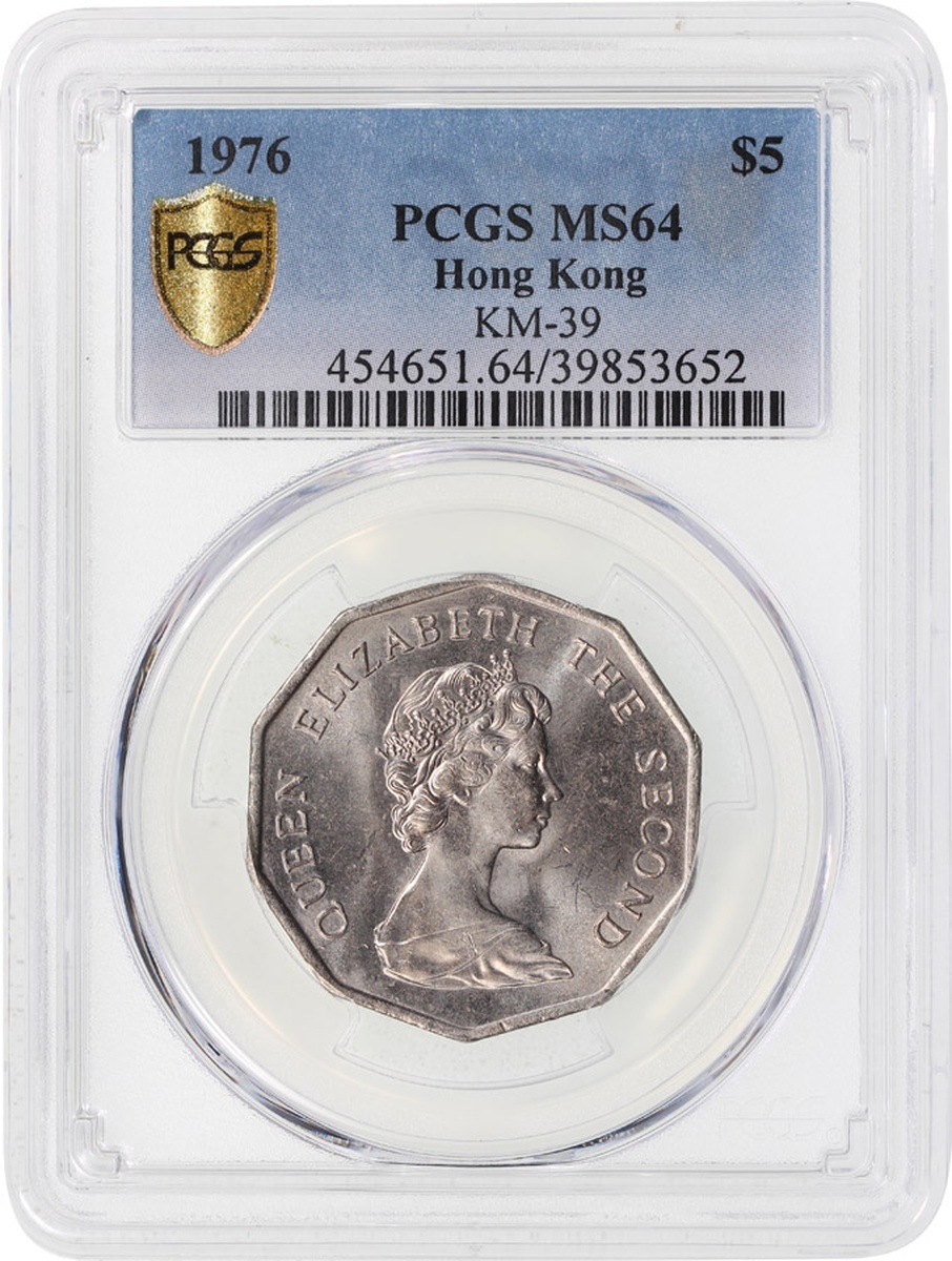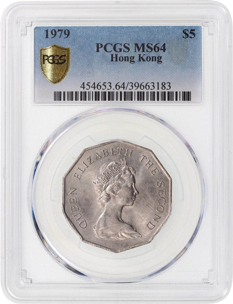 Hong Kong, a trio of copper nickel $5, 1976, 1978, 1979, (KM-39), all graded PCGS MS64.(3)
