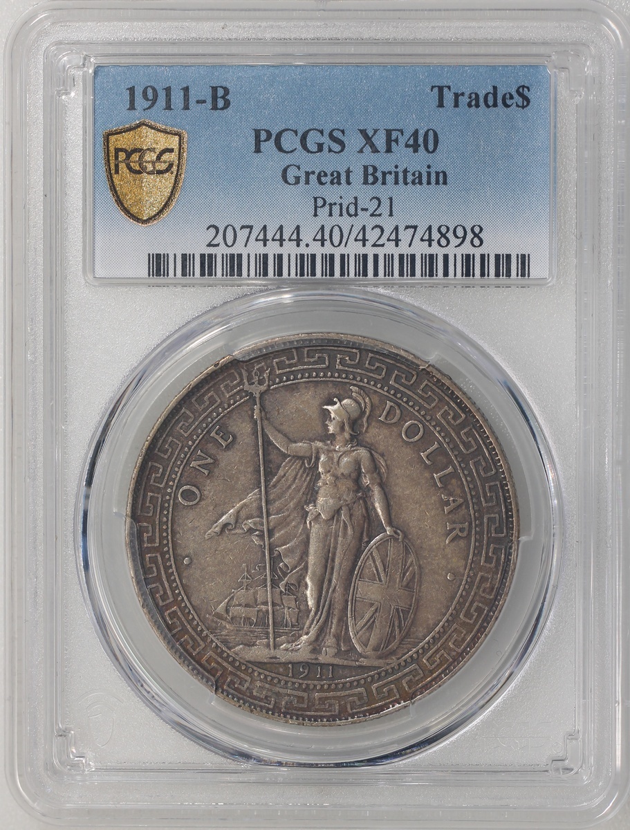 1911-B英國貿易銀元,PCGS XF40,#42474898