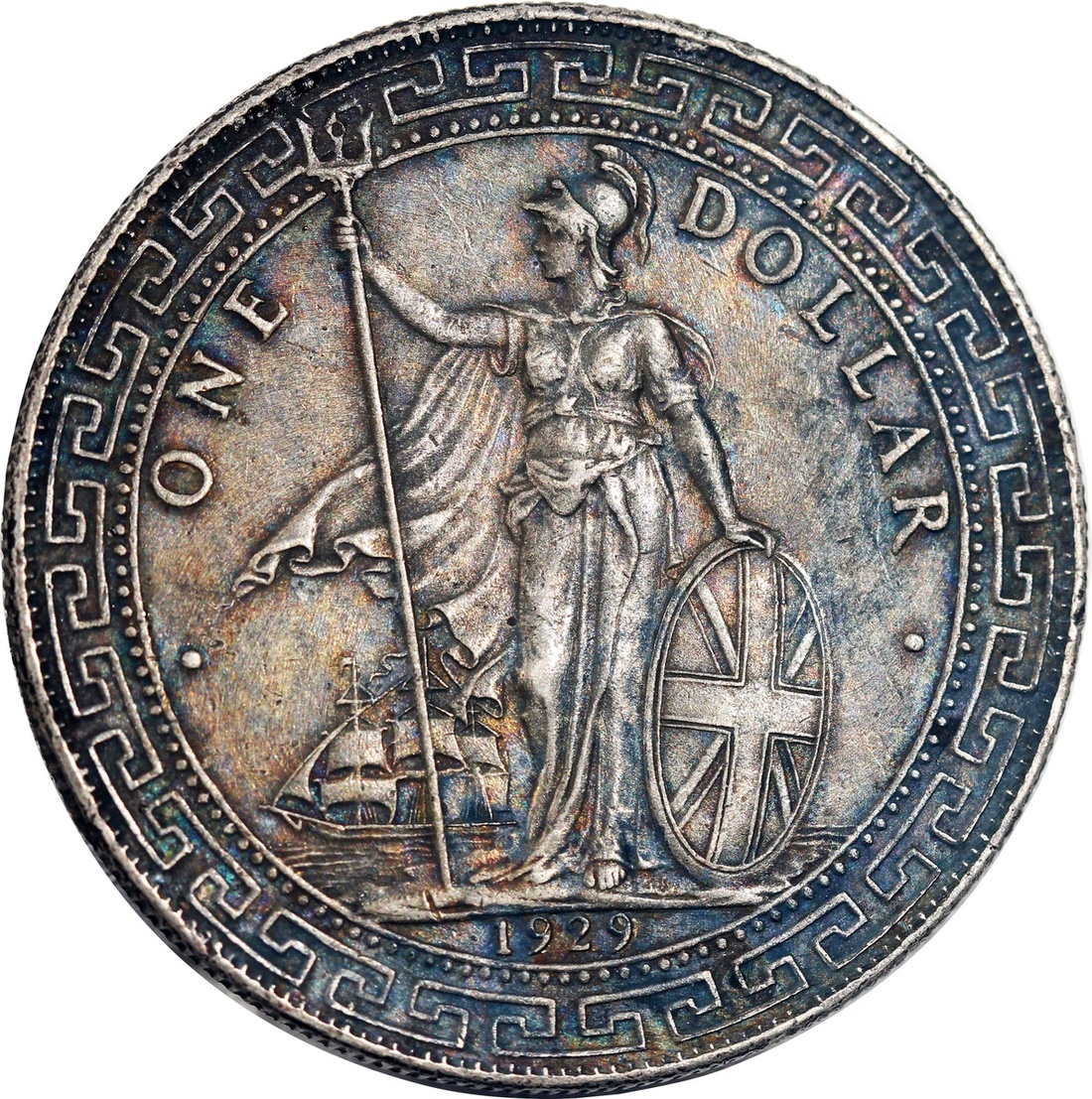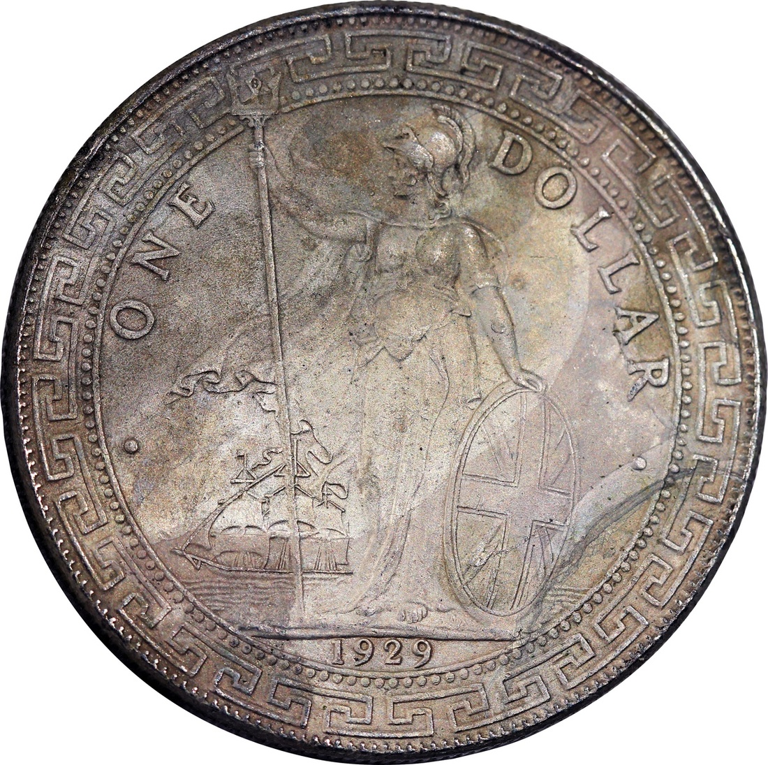 Great Britain, a trio of silver $1, 1912 and 1929-B, Trade dollar, toned, good very fine to extremely fine.(3)