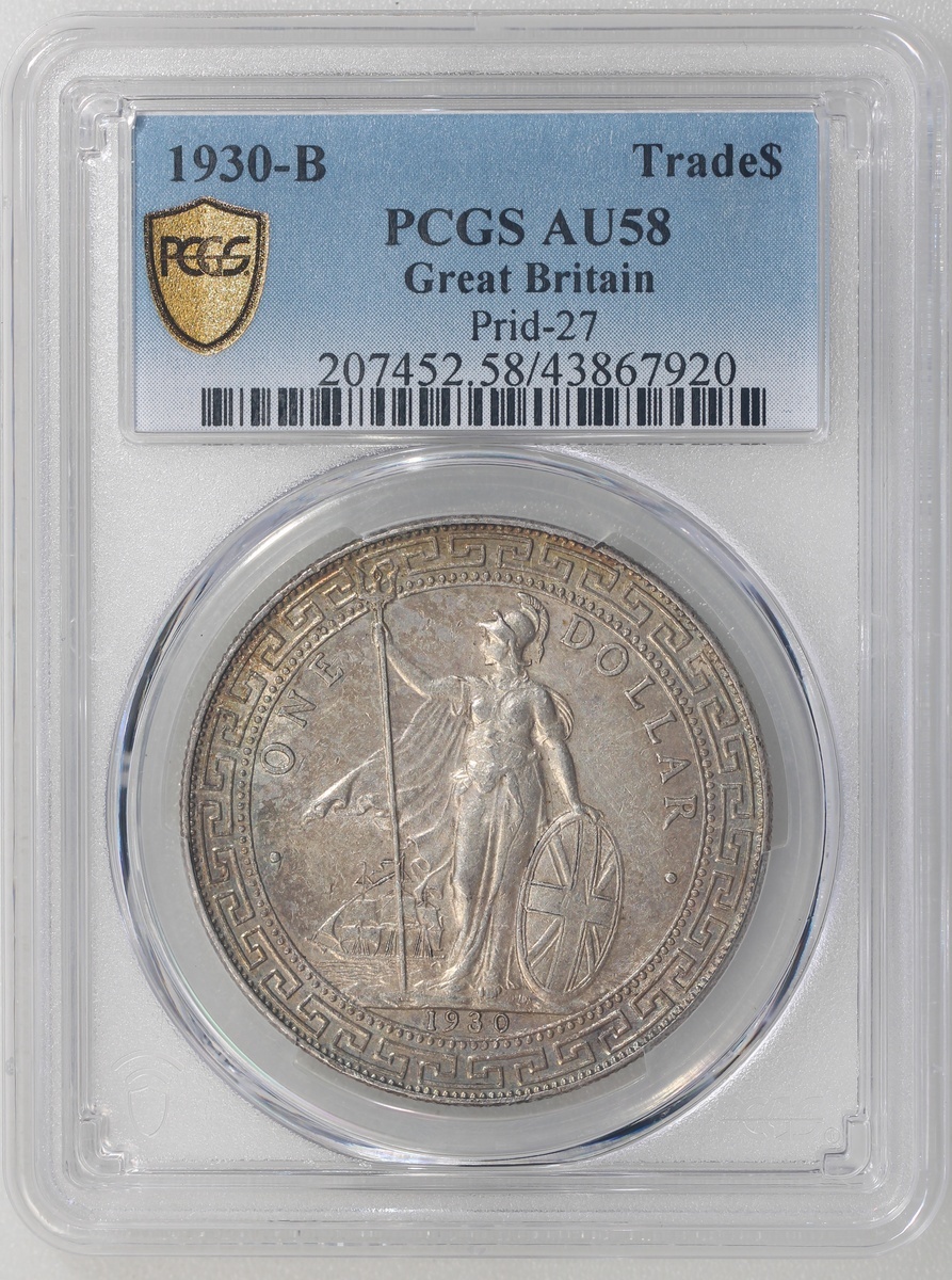 1930-B英國貿易銀元,PCGS AU58,帶包漿,#43867920