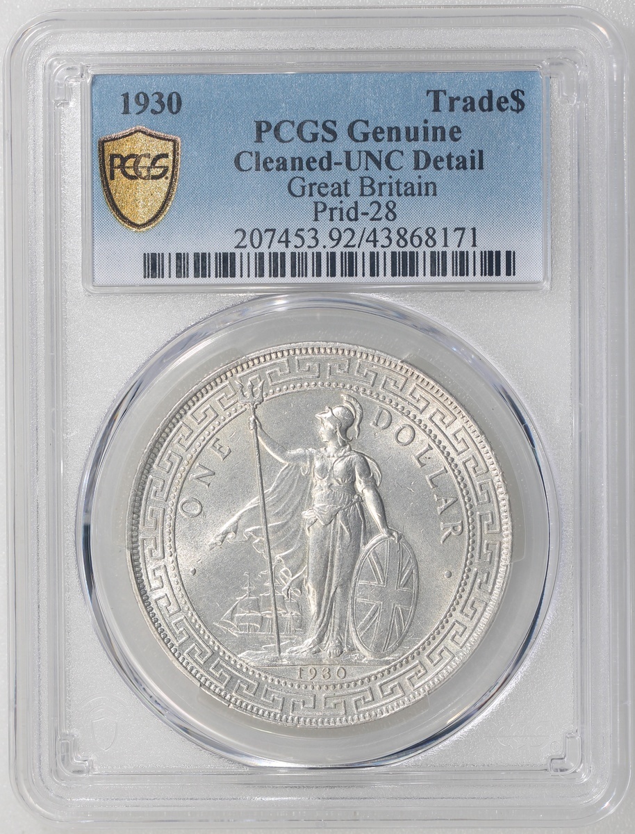 Great Britain, silver trade dollar, 1930, (Prid-28), PCGS Genuine Cleaned - UNC Detail, with original lustre, #43868171.