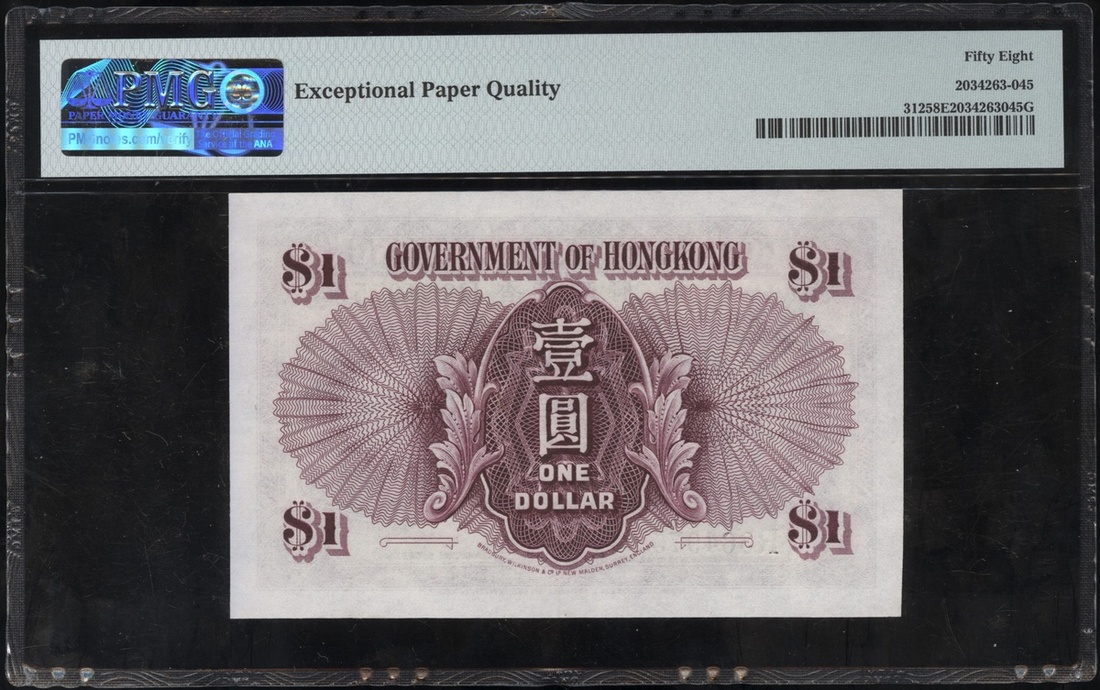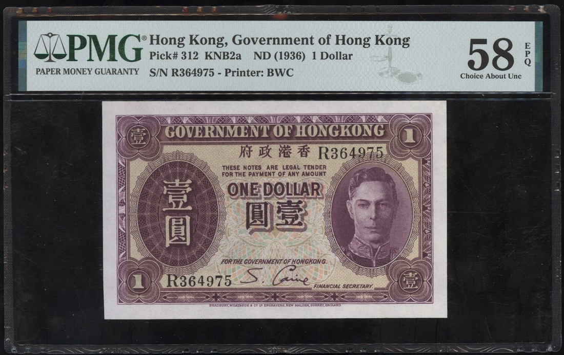 1936年香港政府1元,編號R364975,PMG58EPQ