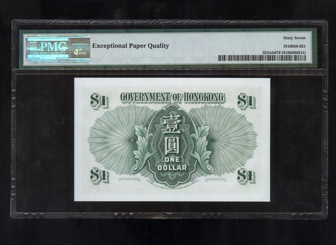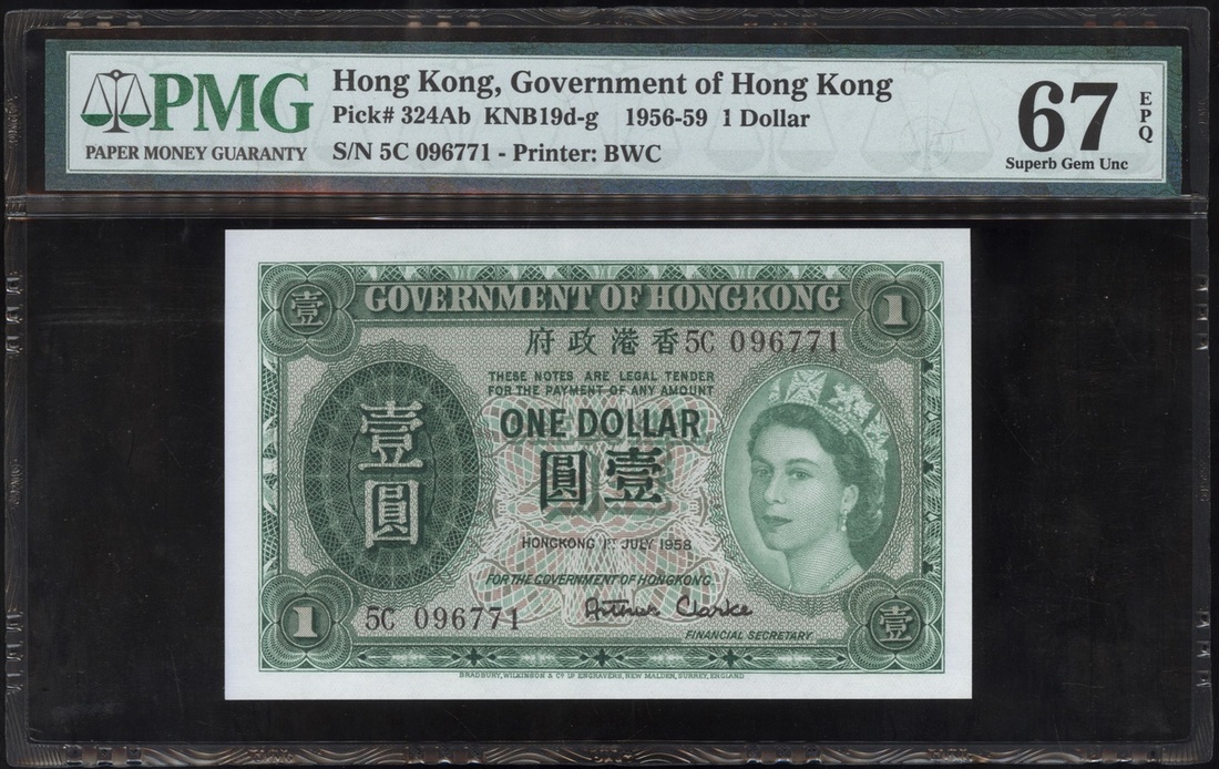 Government of Hong Kong, $1, 1.7.1958, serial number 5C 096771, (Pick 324Ab), PMG 67EPQ Superb Gem Uncirclated