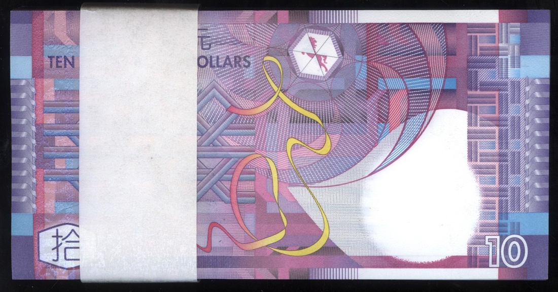 Government of Hong Kong, a bundle of 100x $10, replacement, 1.7.2002, consecutive serial numbers ZZ397601-700, (Pick 400a), uncirculated with paper wrapper (100)