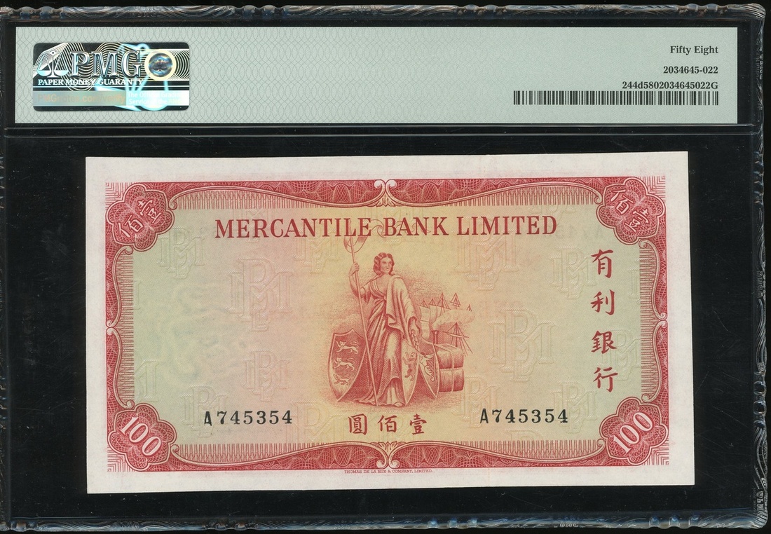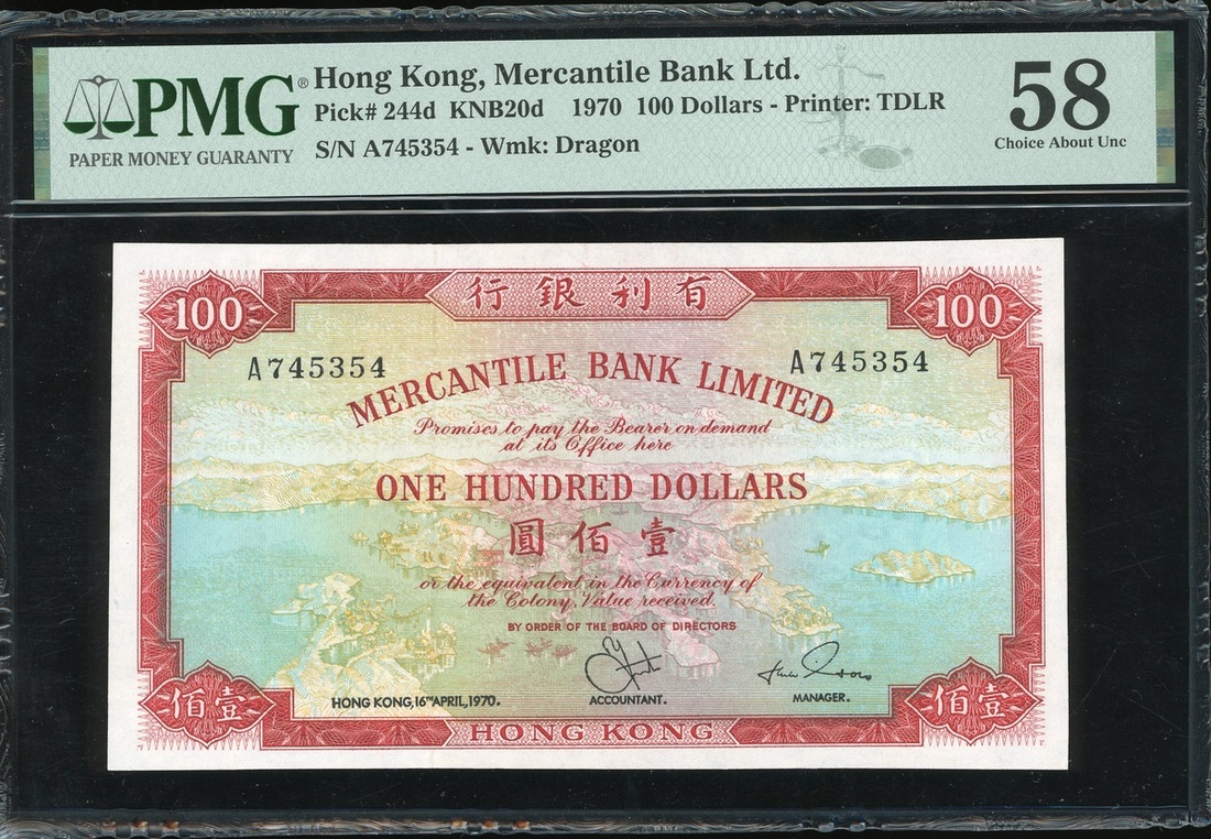 Mercantile Bank Limited, $100, 16.4.1970, serial number A745354, (Pick 244d), PMG 58 Choice About Uncirculated