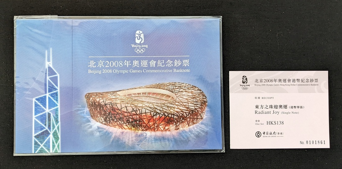 Bank of China, $20, 1.1.2008, serial number 922299, Beijing 2008 Olympics commemorative issue,