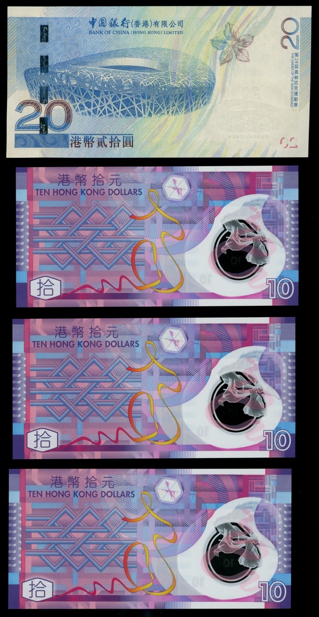 Bank of China, $20, Beijing Summer Olympics Commemorative. 1.1.2008, HK888565,