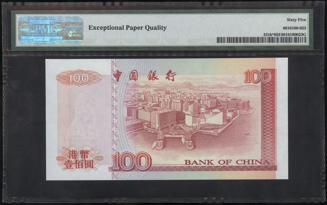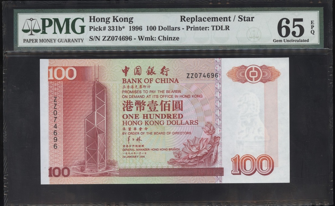 Bank of China, $100, replacement, 1.1.1996, serial number ZZ74696, (Pick 331b*), PMG 65EPQ Gem Uncirculated.