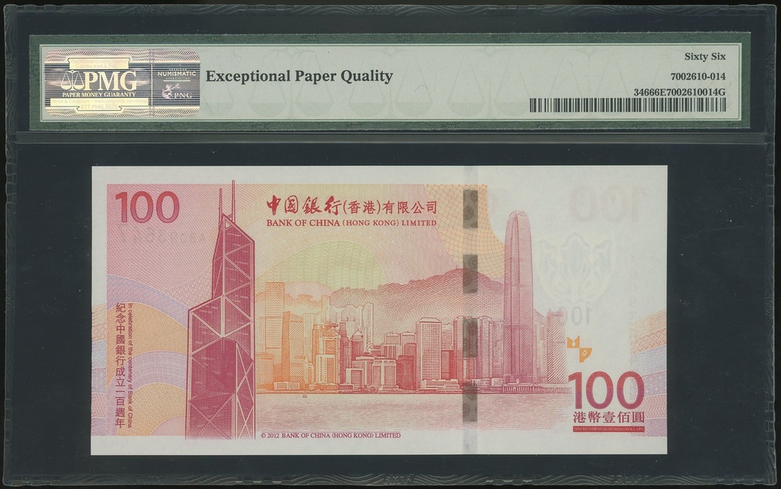 2009年中國銀行成立百年紀念100元,編號AB093647,PMG 66EPQ