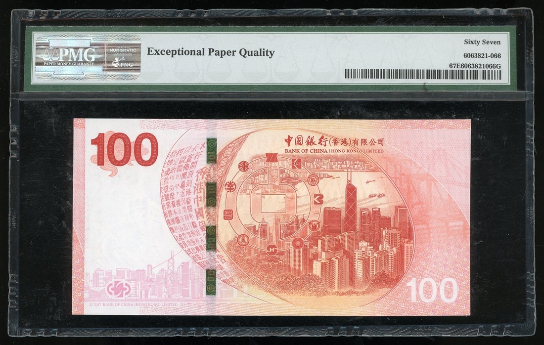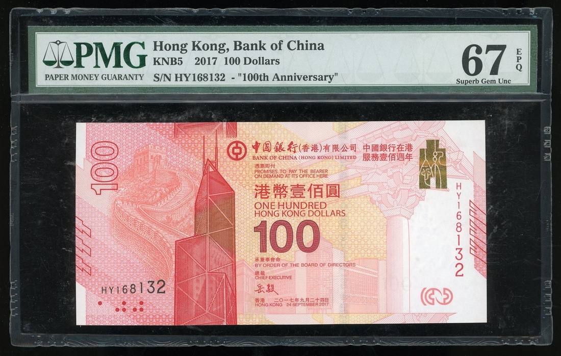 Bank of China, $100, 24.9.2017, serial number HY168132, 100th Anniversary of the Bank in Hong Kong, (KNB5), PMG 67EPQ Superb Gem Uncirculated