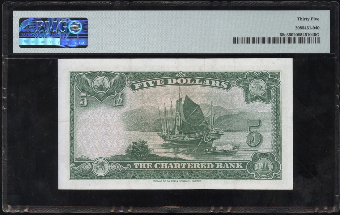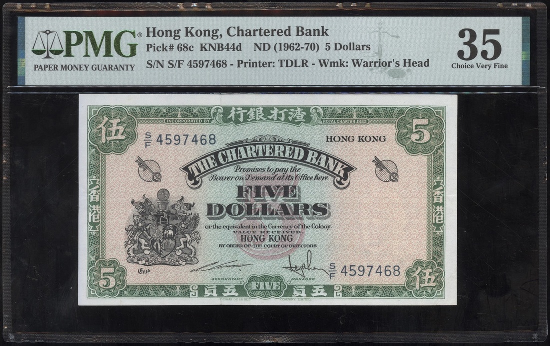 1962-70年渣打銀行5元,無日期,編號S/F 4597468,PMG 35