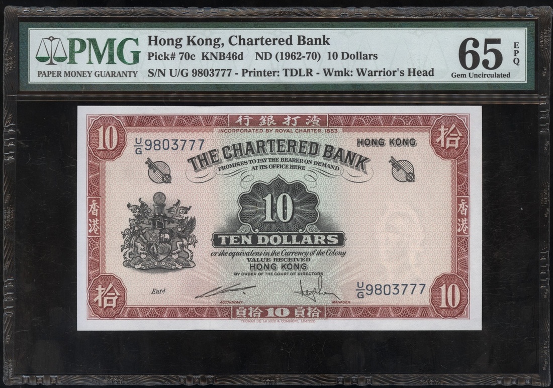 1962-70年渣打銀行10元,編號U/G 9803777,PMG65EPQ