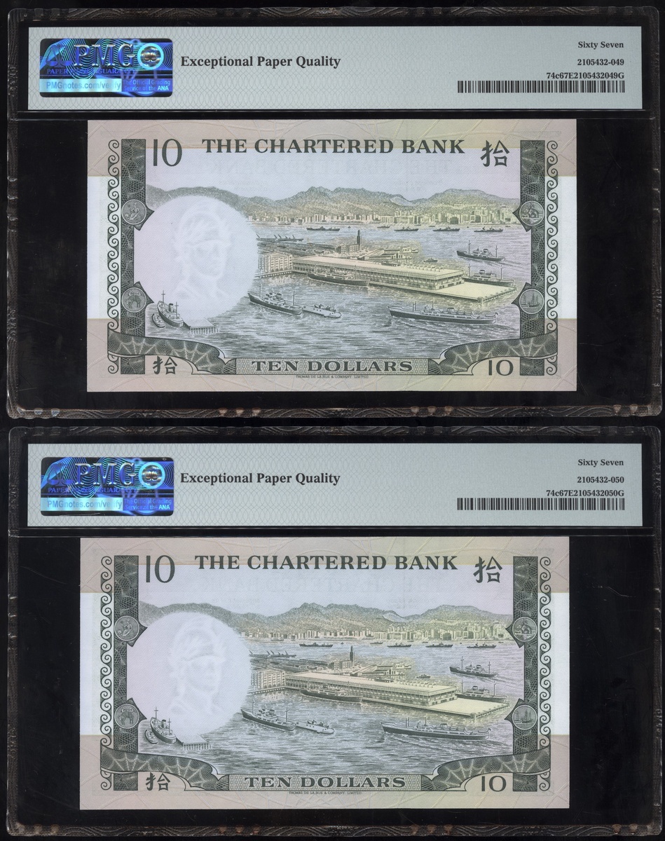 The Chartered Bank, (Pick 74c and 77b), graded PMG 58EPQ-67EPQ (20)