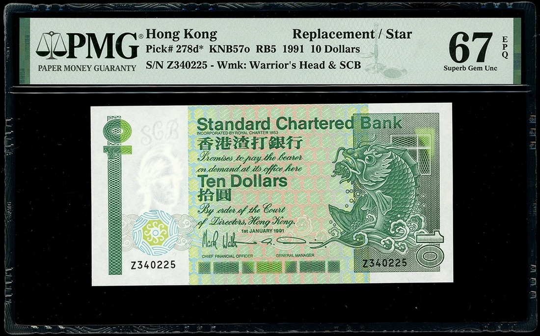 1991年渣打銀行10元,補號Z340225, PMG 67EPQ