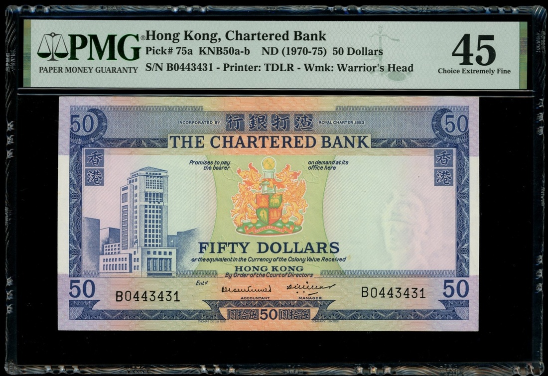 The Chartered Bank, $50, ND(1970-75), serial number B0443431, (Pick 75a), PMG 45 Choice Extremely Fine