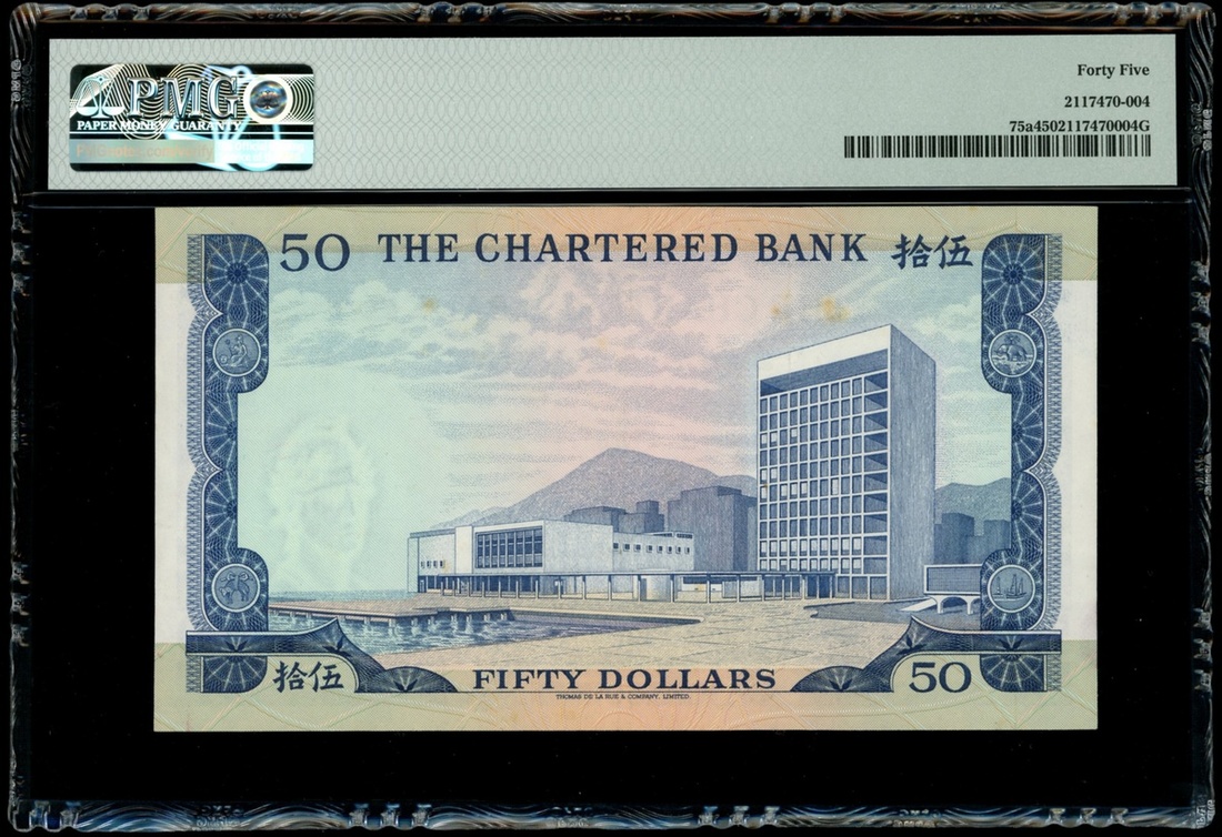 1970-75年渣打銀行50元,編號B0443431,PMG 45