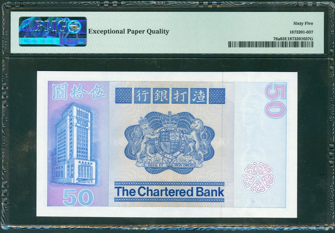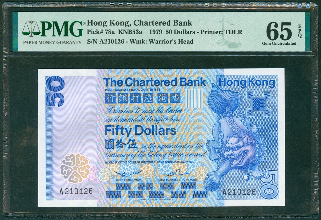 1979年渣打銀行50元,編號A210126,首發字軌,PMG 65EPQ