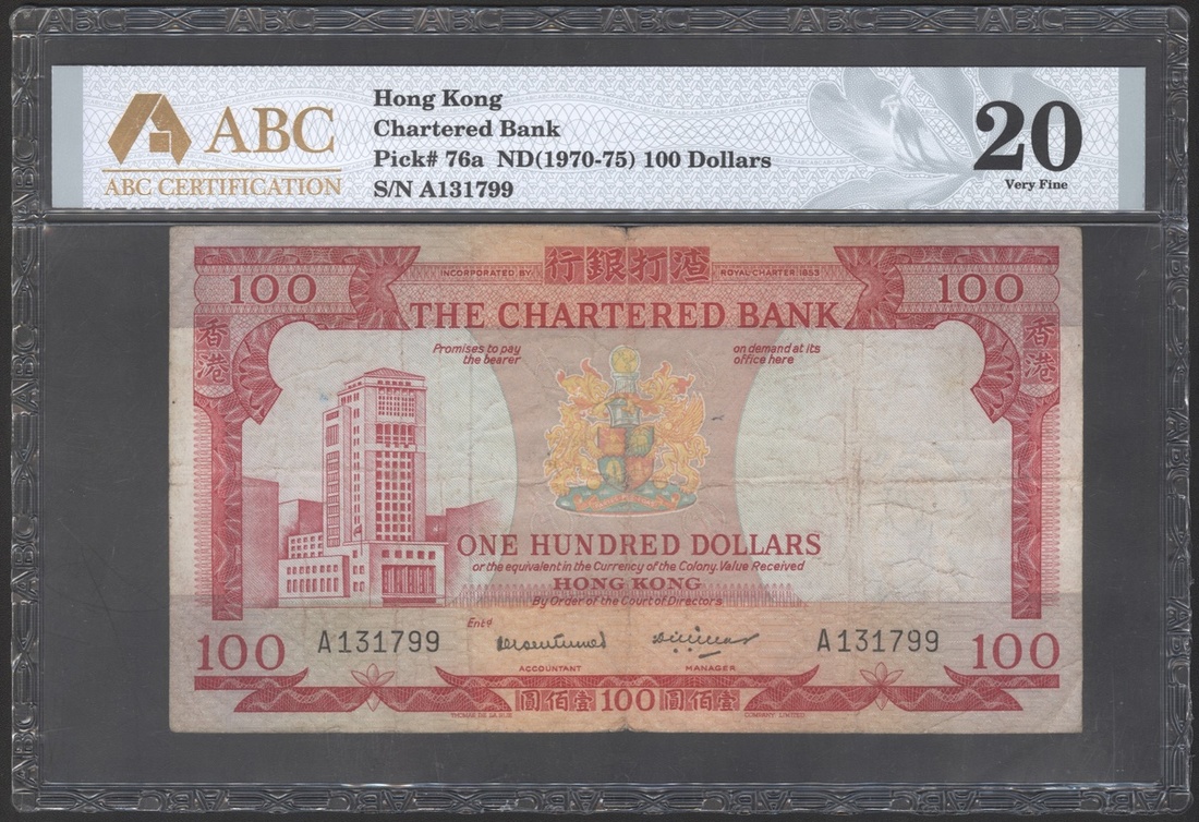 1970-75年渣打銀行100元「紅屋」,編號A131799,ABC20