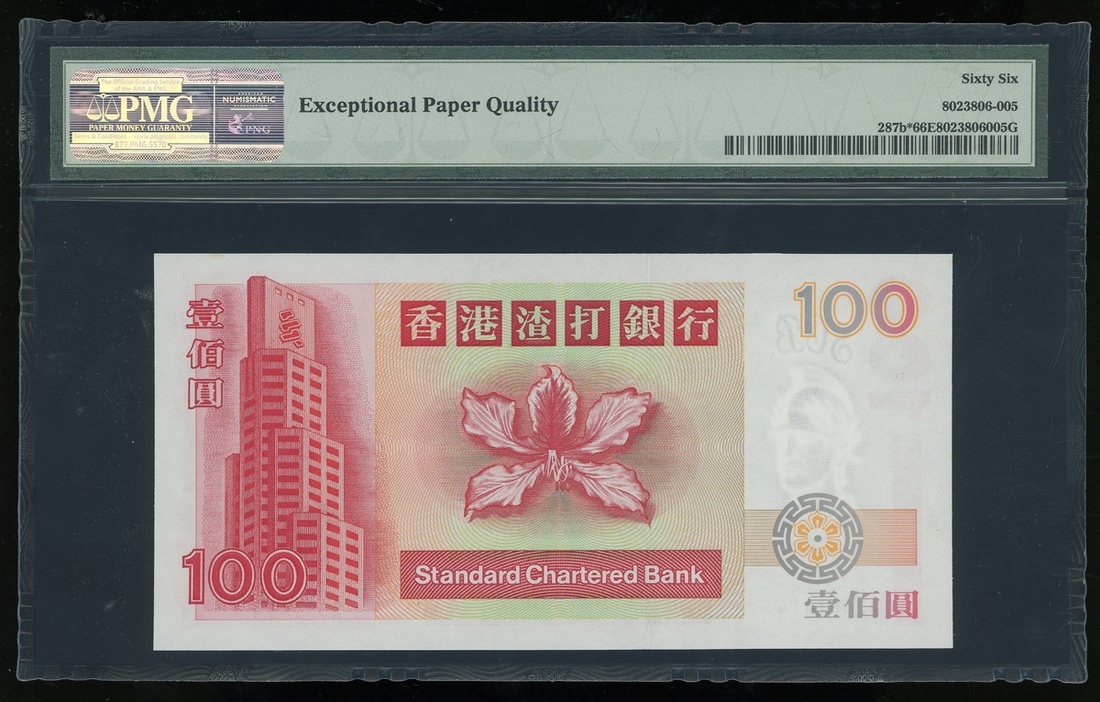 1995年渣打銀行100元,補號Z051414,PMG 66EPQ