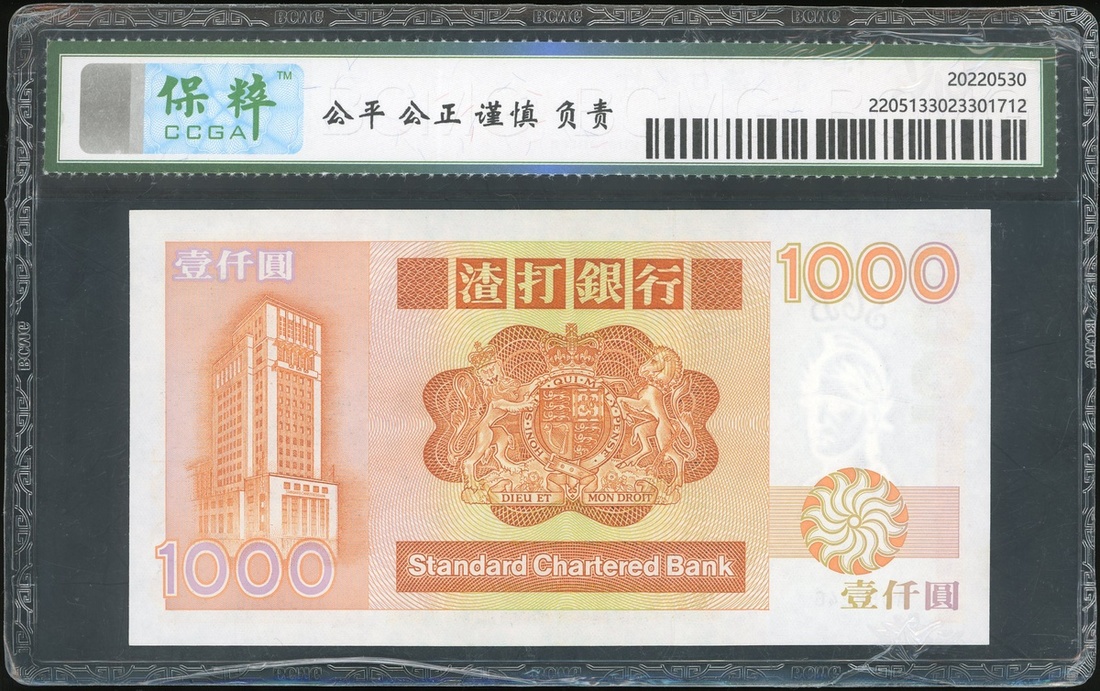 1985年渣打銀行1000元,編號A058246,首發字軌,CCGA 68EPQ,售後不設退換