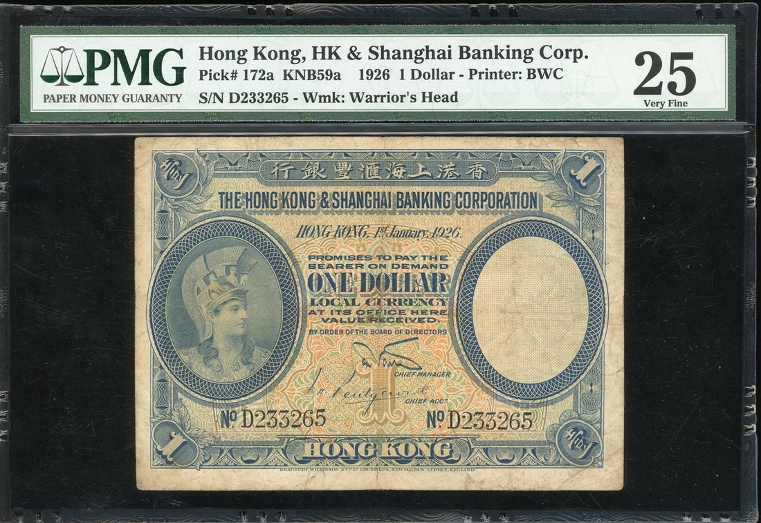 The Hongkong and Shanghai Banking Corporation, $1, 1.1.1926, serial number D233265, (Pick 172a), PMG 25 Very Fine.
