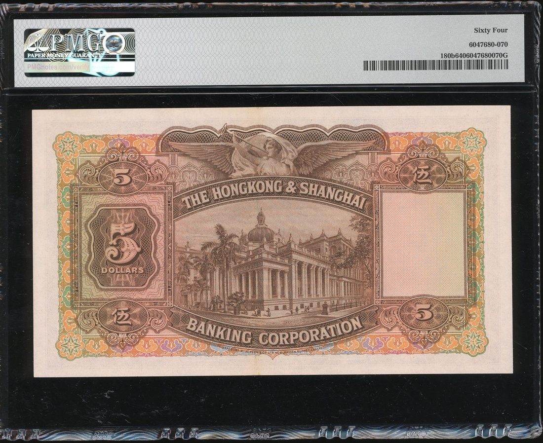 The Hong Kong And Shanghai Banking Corporation, $5, 04.02.1959, serial number P/H 483099, (Pick 180b), PMG 64 Choice Uncirculated