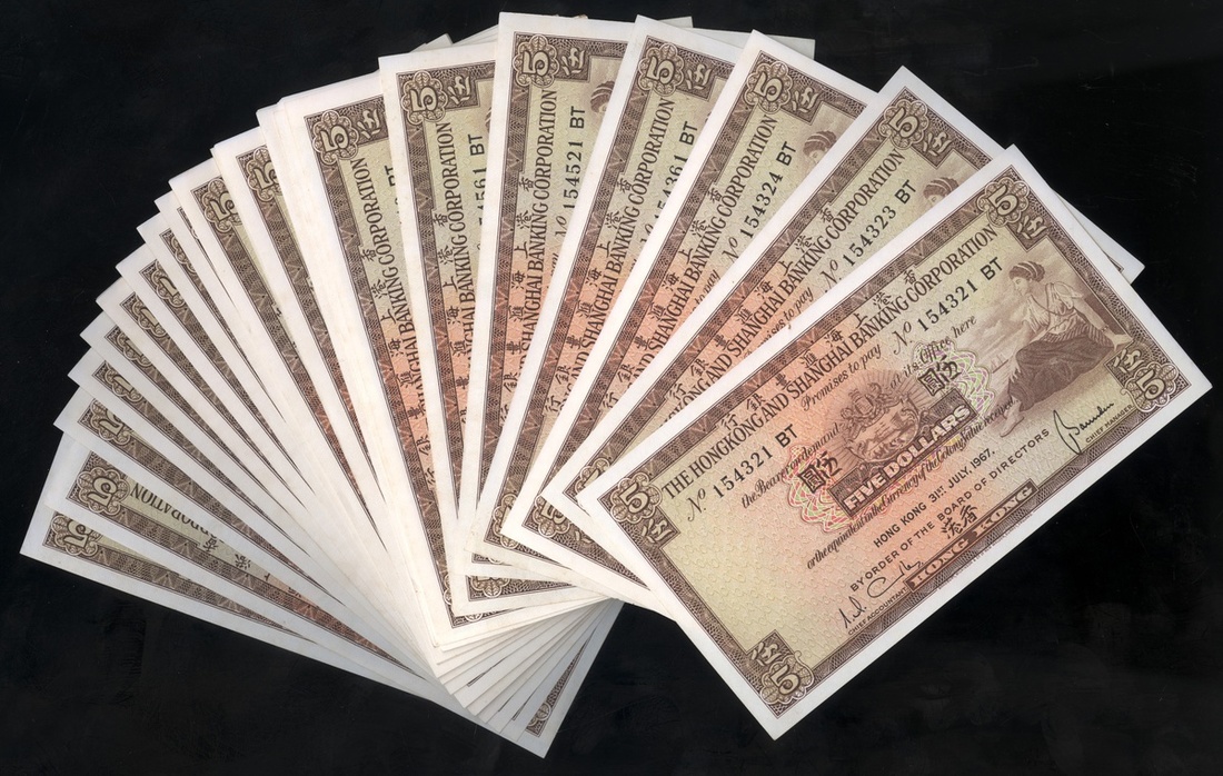 1967年香港上海匯豐銀行5元一組,均UNC,建議預覽