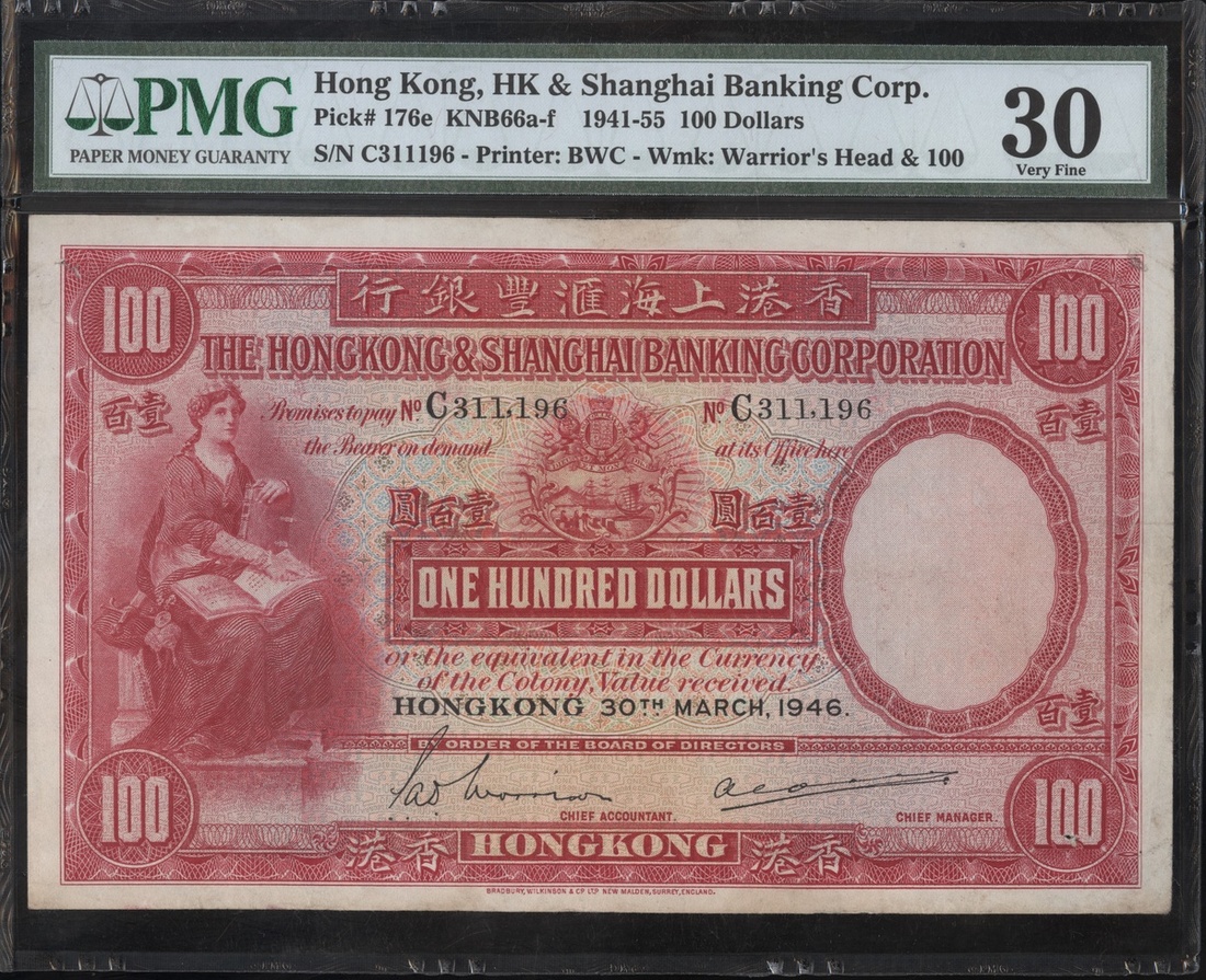 1946年香港上海匯豐銀行100元,編號C311196,PMG30