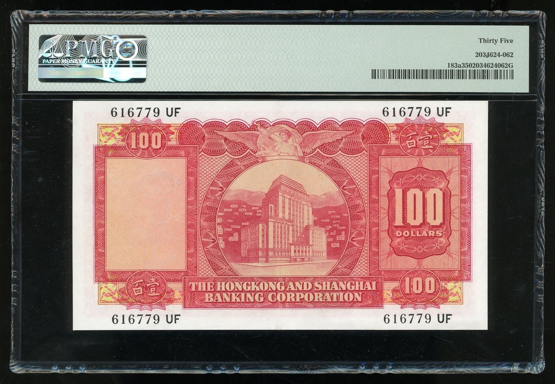 1960年香港上海匯豐銀行100元,編號616779 UF,PMG 35